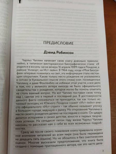 Свернуть"Я родился в восемь часов вечера 16 апреля 1889 года в Лондоне, в районе Уолворт, на Ист-лейн". Вряд ли сегодня кто-то не знает, где и когда родился мальчик по имени Чарли, которому было суждено стать великим. Но в 1964 году, когда его автобиография впервые появилась на свет, эта информация стала настоящим открытием – до этого никто точно не знал, где и когда родилась Легенда. И это далеко не последнее откровение, которым делится Чаплин на страницах этой книги. Жизнь легендарного маэстро была наполнена удивительными событиями. Он мало учился в школе и наверстывал упущенное самостоятельно. Совершенно случайно он попал в кинематограф и всего за несколько лет стал знаменитым во всем мире. Открыл миру много новых лиц и подарил несколько культовых фильмов. Как ему это удалось? На страницах этой автобиографии вы сможете проследить за приключениями человека, который боролся, выживал и экспериментировал. Чарли Чаплину удалось взмыть на орбиту невиданного успеха и задержаться там на многие годы, и он готов разделить эту историю с читателем. Он расскажет о своих воспоминаниях, переживаниях и размышлениях – обо всем, что помогло ему на пути. При том Чаплин не жалеет себя – он смеется и подтрунивает над собой, пытаясь развеселить мир даже со страниц книги. Поддайтесь его очарованию, окунитесь в атмосферу старого Голливуда и узнайте историю настоящей Легенды из первых уст!Автобиография легенды, которую должен прочитать каждый ценитель кинематографа! Чарли Чаплин смешил публику по всему миру почти полвека, но личность его была