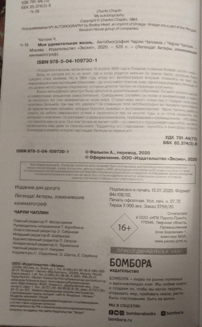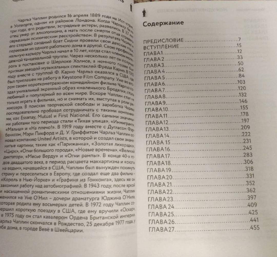 Описание"Я родился в восемь часов вечера 16 апреля 1889 года в Лондоне, в районе Уолворт, на Ист-лейн". Вряд ли сегодня кто-то не знает, где и когда родился мальчик по имени Чарли, которому было суждено стать великим. Но в 1964 году, когда его автобиография впервые появилась на свет, эта информация стала настоящим открытием – до этого никто точно не знал, где и когда родилась Легенда. И это далеко не последнее откровение, которым делится Чаплин на страницах этой книги. Жизнь легендарного маэстро была наполнена удивительными событиями. Он мало учился в школе и наверстывал упущенное самостоятельно. Совершенно случайно он попал в кинематограф и всего за несколько лет стал знаменитым во всем мире. Открыл миру много новых лиц и подарил несколько культовых фильмов. Как ему это удалось? На страницах этой автобиографии вы сможете проследить за приключениями человека, который боролся, выживал и экспериментировал. Чарли Чаплину удалось взмыть на орбиту невиданного успеха и задержаться там на многие годы, и он готов разделить эту историю с читателем. Он расскажет о своих воспоминаниях, переживаниях и размышлениях – обо всем, что помогло ему на пути. При том Чаплин не жалеет себя – он смеется и подтрунивает над собой, пытаясь развеселить мир даже со страниц книги. Поддайтесь его очарованию, окунитесь в атмосферу старого Голливуда и узнайте историю настоящей Легенды из первых уст!Автобиография легенды, которую должен прочитать каждый ценитель кинематографа! Чарли Чаплин смешил публику по всему миру почти полвека, но личность его была