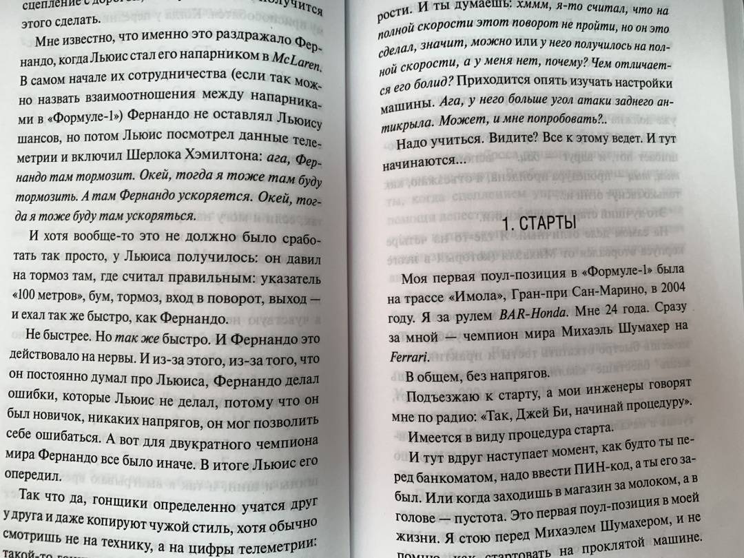 ОписаниеЧто такое моторхоум, симулятор, тесты? Как правильно отмечать победу и почему важно затыкать большим пальцем бутылку шампанского на подиуме? Чемпион мира 2009 года, британец Дженсон Баттон приоткрывает завесу тайны над паддоком "Ф-1" и рассказывает, что же это такое, быть пилотом "Формулы-1".Вы поймете, какие 12 качеств необходимы каждому гонщику, а также что работа пилота состоит не только в пилотировании болида, но и в умении общаться со спонсорами, СМИ и командой. Вы даже научитесь управлять машиной, правильно обгонять, тормозить и выбирать тактику на гонки. И, конечно, узнаете много нового о карьере самого Баттона: о его возвращении в "Формулу-1" на Гран-при Монако в 2017 году, об участии в других гоночных сериях, о взаимоотношениях с героями "Формулы-1", знакомыми каждому болельщику. Сложно представить, что профессиональный пилот может забыть, как заводится болид, но Баттон расскажет не одну забавную историю из паддока.Что такое моторхоум, симулятор, тесты? Как правильно отмечать победу и почему важно затыкать большим пальцем бутылку шампанского на подиуме? Чемпион мира 2009 года, британец Дженсон Баттон приоткрывает завесу тайны над паддоком "Ф-1" и рассказывает, что же это такое, быть пилотом "Формулы-1".Вы поймете, какие 12 качеств необходимы каждому гонщику, а также что работа пилота состоит не только в пилотировании болида, но и в умении общаться со спонсорами, СМИ и командой. Вы даже научитесь управлять машиной, правильно обгонять, тормозить и выбирать тактику на гонки. И, конечно, узнаете много нового о карьере самого Баттона: о его возвращении в "Формулу-1" на Гран-при Монако в 2017 году, об участии в других гоночных сериях, о взаимоотношениях с героями "Формулы-1", знакомыми каждому болельщику. Сложно представить, что профессиональный пилот может забыть, как заводится болид, но Баттон расскажет не одну забавную историю из паддока.