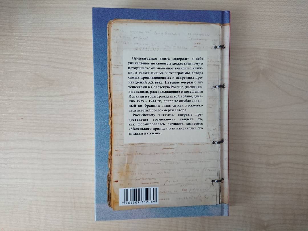 ОписаниеПредлагаемая книга содержит в себе уникальные по своему художественному и историческому значению записные книжки, а также письма автора самых проникновенных и искренних произведений XX века. Путевые очерки о путешествии в Советскую Россию; дневниковые записи, рассказывающие о посещении Испании в годы Гражданской войны; дневник 1939 - 1944 гг., впервые опубликованный во Франции лишь спустя несколько десятилетий после смерти автора.Российскому читателю впервые предоставлена возможность увидеть то, как формировалась личность создателя "Маленького принца", как изменялись его взгляды на жизнь.Предлагаемая книга содержит в себе уникальные по своему художественному и историческому значению записные книжки, а также письма автора самых проникновенных и искренних произведений XX века. Путевые очерки о путешествии в Советскую Россию; дневниковые записи, рассказывающие о посещении Испании в годы Гражданской войны; дневник 1939 - 1944 гг., впервые опубликованный во Франции лишь спустя несколько десятилетий после смерти автора.Российскому читателю впервые предоставлена возможность увидеть то, как формировалась личность создателя "Маленького принца", как изменялись его взгляды на жизнь.