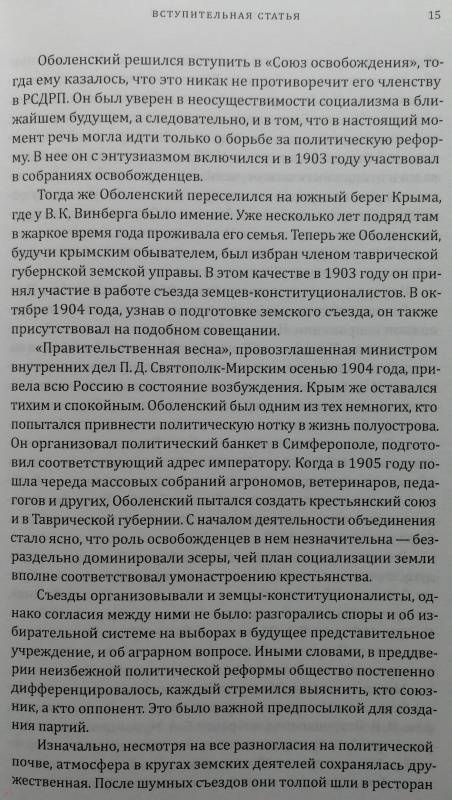 ОписаниеОболенский Владимир Андреевич, князь (1869-1950) - общественный и политический деятель, один из ярких представителей партии кадетов. Вошел в "Союз освобождения". Занял видное положение в Конституционно-демократической партии, был избран депутатом 1-й Государственной думы от Таврической губернии.В настоящем издании впервые публикуются воспоминания Оболенского, написанные в 1937 году для Русского исторического архива в Праге, а ныне хранящиеся в Государственном архиве Российской Федерации. В своих мемуарах князь приводит интереснейшие подробности из жизни социалистических кружков, политической эмиграции начала XX века, земства, партии кадетов, 1-й Государственной думы, Белого движения.Автором представлена целая галерея общественных и политических деятелей эпохи: Ф. Ф. Кокошкин, П. Н. Милюков, С. А. Муромцев, В. Д. Набоков, И. И. Петрункевич, Ф. И. Родичев, П. Б. Струве и многие другие. Отличительными чертами воспоминаний Оболенского являются красочные зарисовки, бытовые подробности, детализированные портреты современников.Текст снабжен комментариями и вступительной статьей и адресован как специалистам, так и широкому кругу читателей.СвернутьОболенский Владимир Андреевич, князь (1869-1950) - общественный и политический деятель, один из ярких представителей партии кадетов. Вошел в "Союз освобождения". Занял видное положение в Конституционно-демократической партии, был избран депутатом 1-й Государственной думы от Таврической губернии.В настоящем издании впервые публикуются воспоминания Оболенского, написанные в 1937 году для Русского исторического архива в Праге, а ныне хранящиеся в Государственном архиве Российской Федерации. В своих мемуарах князь приводит интереснейшие подробности из жизни социалистических кружков, политической эмиграции начала XX века, земства, партии кадетов, 1-й Государственной думы, Белого движения.Автором представлена целая галерея общественных и политических деятелей эпохи: Ф. Ф. Кокошкин, П. Н. Милюков, С. А. Муромцев, В. Д. Набоков, И. И. Петрункевич, Ф. И. Родичев, П. Б. Струве и многие другие. Отличительными чертами воспоминаний Оболенского являются красочные зарисовки, бытовые подробности, детализированные портреты современников.Текст снабжен комментариями и вступительной статьей и адресован как специалистам, так и широкому кругу читателей.СвернутьСвернуть