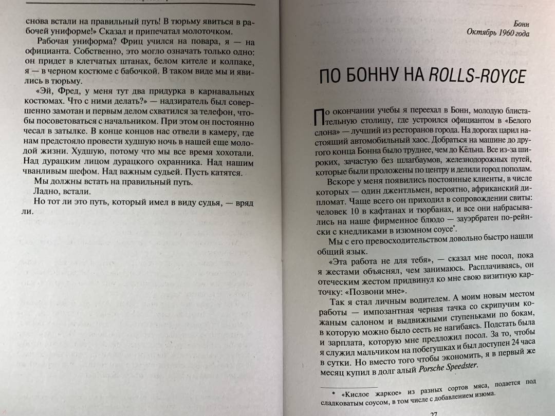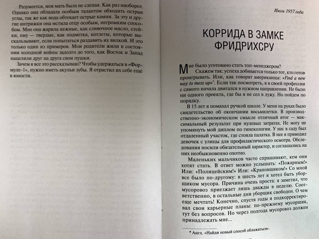 СвернутьЗа каждым успешным мужчиной всегда стоит... сильный менеджер. Два десятилетия Вилли Вебер занимался делами, пожалуй, самого знаменитого гонщика в мире — Михаэля Шумахера. Вилли Вебер в своей жизни перепробовал множество занятий: чистил картошку в подвале замка, возил африканского дипломата, продавал часы и алкоголь и даже превратился в ресторатора. Но главной страстью в его жизни были автомобили: он торговал ими, гонялся на них, и в итоге они привели его в «Формулу-1».Серый кардинал Берни Экклстоун, рок-звезда «Ф-1» Флавио Бриаторе, каменнолицый Рон Деннис, элегантный Жан Тодт, эксцентричный Эдди Джордан — «королева автоспорта» той поры напоминала настоящий аквариум с пираньями. Со временем Вилли Вебер ощутил себя в нем как рыба в воде и теперь делится забавными байками из паддока. Вы узнаете, как он познакомился с юным Шумахером, тайну перехода Михаэля из Jordan в Benneton и почему он предпочел Ferrari команде McLaren; а также увидите в действии пару хитрых менеджерских приемчиков.Вилли Вебер – менеджер самого титулованного автогонщика современности Михаэля Шумахера. Его автобиография – вдохновляющий, но тернистый путь человека к мечте. Вспоминая события своей жизни и давая им честную оценку, Вилли Вебер раскрывает свое истинное лицо, скрытое под маской успешного менеджера. Книга обнажает «теневую сторону» мира гонок и полна подробностей из жизни и профессиональной карьеры Шумахера. Впервые поклонники автоспорта узнают подлинную историю самого успешного дуэта в мире «Формулы-1» – парнишки из Керпена и ресторатора из Регенсбурга.