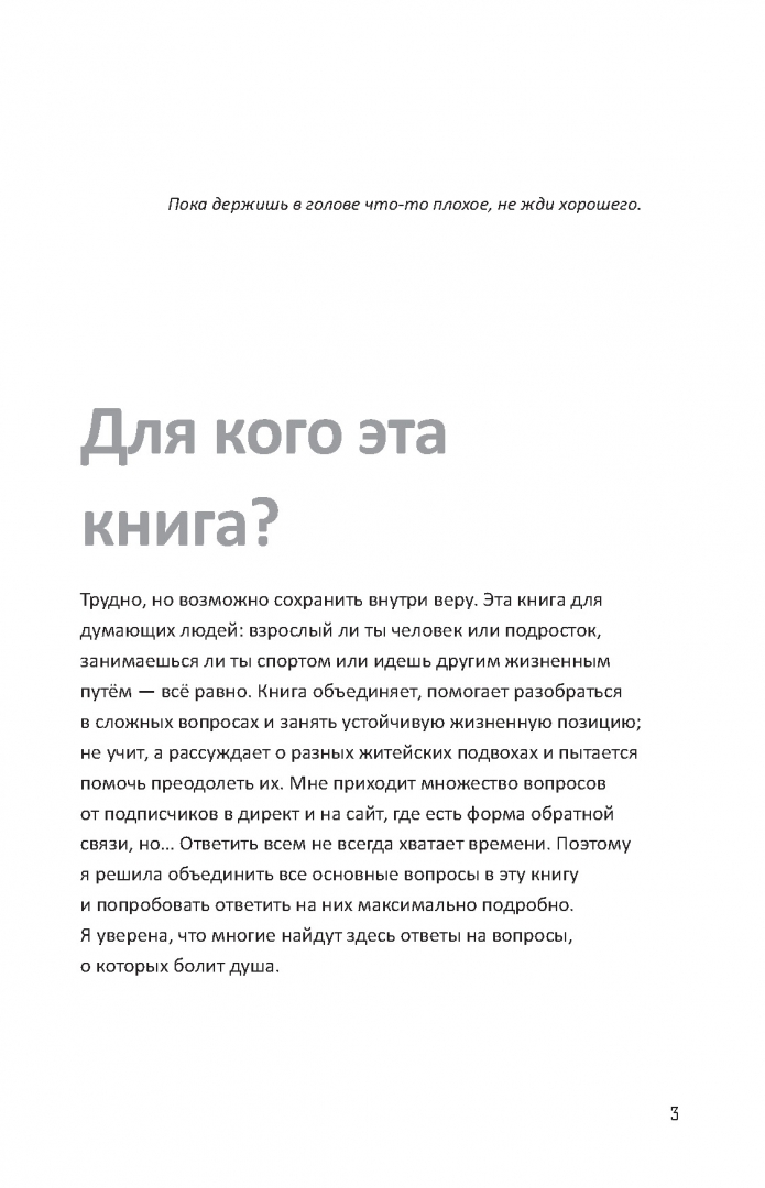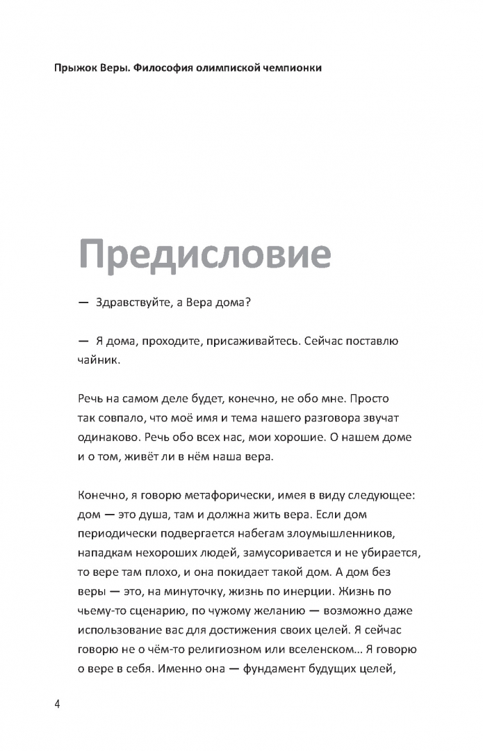 ОписаниеВера Бирюкова - гимнастка, чемпионка Олимпийских игр и заслуженный мастер спорта, автор бестселлера "Вера - твой пропуск к пьедесталу" - книги для будущих чемпионов и их родителей. Блогер с аудиторией более 1,8 млн подписчиков. Книга "Прыжок Веры" - это своего рода размышления на темы, которые волнуют каждого. Вера Бирюкова не понаслышке знает, как порой бывает непроста жизнь спортсмена, какова теневая сторона спорта, и в чем его сила. Находясь в спорте более 15 лет, Вера поняла самое главное - невозможно разобраться в сложных вопросах, добиться поставленных целей и жить полноценной счастливой жизнью без веры в себя. "В этой книге мы с вами ходим по разным комнатам своей души. Заглядывание в каждый уголок - это уже шаг в поиске веры, если таковая потерялась или её кто-то у вас отнял. Не переживайте, мы обязательно её вернём"Вера Бирюкова - гимнастка, чемпионка Олимпийских игр и заслуженный мастер спорта, автор бестселлера "Вера - твой пропуск к пьедесталу" - книги для будущих чемпионов и их родителей. Блогер с аудиторией более 1,8 млн подписчиков. Книга "Прыжок Веры" - это своего рода размышления на темы, которые волнуют каждого. Вера Бирюкова не понаслышке знает, как порой бывает непроста жизнь спортсмена, какова теневая сторона спорта, и в чем его сила. Находясь в спорте более 15 лет, Вера поняла самое главное - невозможно разобраться в сложных вопросах, добиться поставленных целей и жить полноценной счастливой жизнью без веры в себя. "В этой книге мы с вами ходим по разным комнатам своей души. Заглядывание в каждый уголок - это уже шаг в поиске веры, если таковая потерялась или её кто-то у вас отнял. Не переживайте, мы обязательно её вернём"