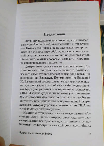 "Великая шахматная доска" Збигнева Бжезинского стоит в одном ряду с важнейшими произведениями политической мысли человечества - "Политикой" Аристотеля и "Государем" Макиавелли, "О войне" Клаузевица и "Столкновением цивилизаций" Хантингтона. Геополитические модели и прогнозы, которые рассматривает Бжезинский, останутся актуальными еще много лет.Збигнев Бжезинский являлся одним из самых известных и влиятельных политиков США на рубеже XX-ХХI веков. Будучи рупором ушедшей эпохи, он написал не один бестселлер о геополитических амбициях США. «Великая шахматная доска» — одно из лучших его произведений, точно выверенное и рассчитанное, как математическое уравнение. Бжезинский сумел не только описать реальные цели Америки на мировой арене, но и предсказал происходящие в мире изменения, их последствия и возможные варианты развития событий. -