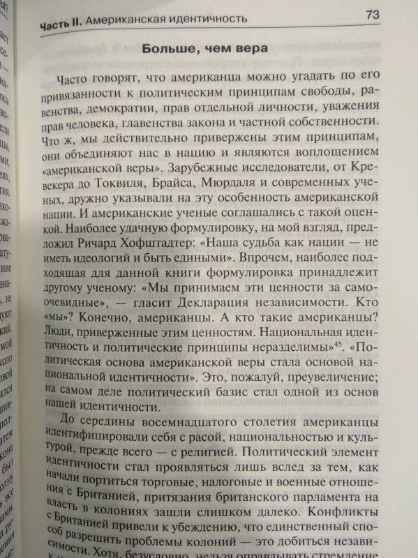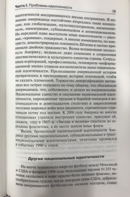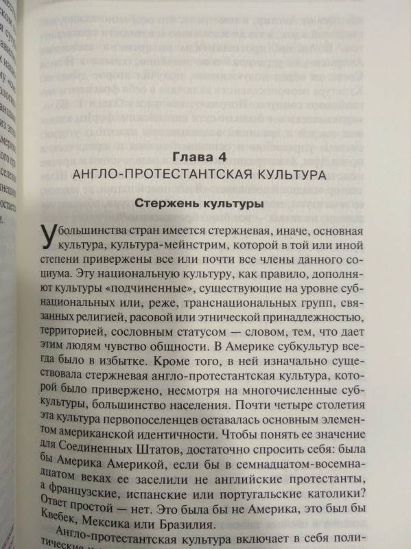 ОписаниеКнига Самюэля Хантингтона посвящена анализу ключевой для современного общественного сознания проблемы - определения идентичности. Приоритет общенационального самосознания особенно важен для страны, которую принято называть "плавильным тиглем народов", - Соединенных Штатов Америки. Однако сегодня в США набирают силу дезинтеграционные процессы, ставящие под сомнение сам факт дальнейшего существования феномена американской идентичности. Америка, как убедительно доказывает профессор Хантингтон, находится на переломе - и от того, в какую сторону в конце концов качнется маятник, зависит будущее не только Соединенных Штатов, но и всей мировой системы в целомКнига Самюэля Хантингтона посвящена анализу ключевой для современного общественного сознания проблемы - определения идентичности. Приоритет общенационального самосознания особенно важен для страны, которую принято называть "плавильным тиглем народов", - Соединенных Штатов Америки. Однако сегодня в США набирают силу дезинтеграционные процессы, ставящие под сомнение сам факт дальнейшего существования феномена американской идентичности. Америка, как убедительно доказывает профессор Хантингтон, находится на переломе - и от того, в какую сторону в конце концов качнется маятник, зависит будущее не только Соединенных Штатов, но и всей мировой системы в целом