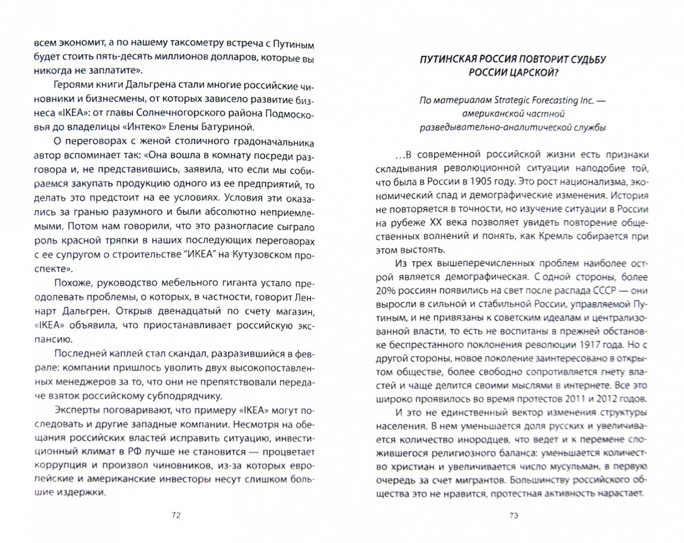 ОписаниеДмитрий Стратиевски - известный политолог из Германии, который изучает особенности развития современной России и представления о ней на Западе. Он утверждает, что штамп "путинская Россия", Putins Russland, превратился в устойчивое словосочетание с определенным смыслом. Что же подразумевается под Putins Russland помимо водки, казаков, матрешек и прочих непременных атрибутов русской жизни? В книге, представленной вашему вниманию, Стратиевски дает подробный анализ того, чем в действительности является путинская Россия и какие клише существуют на сей счет в западных странах.Итальянец Клементе Гонсалес, основываясь на личном опыте, дополняет рассказ Дмитрия Стратиевски. В 2012 году Гонсалес прибыл самолетом в Магадан, и оттуда проехал автостопом через всю Россию. Его впечатления о нашей стране оказались во многом противоречивыми, далекими от однозначности, - он был готов к неожиданностям, но русская реальность превзошла все его ожидания. Помимо материалов Стратиевски и Гонсалеса, книга содержит интересные наблюдения о путинской России и других иностранцев, побывавших у нас в последнее время.СвернутьДмитрий Стратиевски - известный политолог из Германии, который изучает особенности развития современной России и представления о ней на Западе. Он утверждает, что штамп "путинская Россия", Putins Russland, превратился в устойчивое словосочетание с определенным смыслом. Что же подразумевается под Putins Russland помимо водки, казаков, матрешек и прочих непременных атрибутов русской жизни? В книге, представленной вашему вниманию, Стратиевски дает подробный анализ того, чем в действительности является путинская Россия и какие клише существуют на сей счет в западных странах.Итальянец Клементе Гонсалес, основываясь на личном опыте, дополняет рассказ Дмитрия Стратиевски. В 2012 году Гонсалес прибыл самолетом в Магадан, и оттуда проехал автостопом через всю Россию. Его впечатления о нашей стране оказались во многом противоречивыми, далекими от однозначности, - он был готов к неожиданностям, но русская реальность превзошла все его ожидания. Помимо материалов Стратиевски и Гонсалеса, книга содержит интересные наблюдения о путинской России и других иностранцев, побывавших у нас в последнее время.СвернутьСвернуть