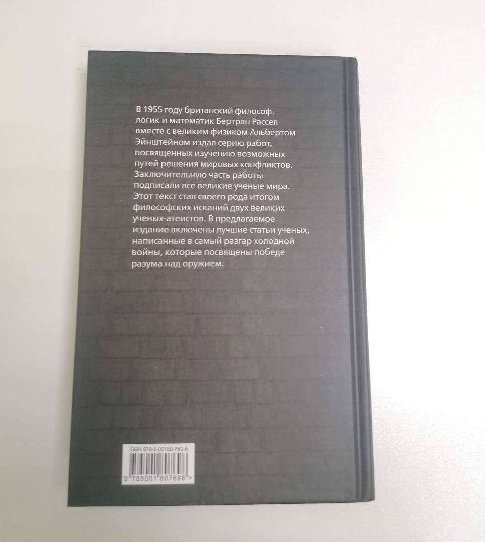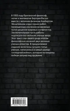 ОписаниеВ 1955-м году британский философ, логик и математик Бертран Рассел вместе с великим физиком А. Эйнштейном издал серию работ, посвященных изучению возможных путей решения мировых конфликтов. Заключительную часть работы подписали все великие ученые мира. Этот текст стал своего рода итогом философских исканий двух великих ученых-атеистов. В предлагаемое издание включены лучшие статьи ученых, написанных в самый разгар «холодной войны», которые посвящены победе разума над оружием.В 1955-м году британский философ, логик и математик Бертран Рассел вместе с великим физиком А. Эйнштейном издал серию работ, посвященных изучению возможных путей решения мировых конфликтов. Заключительную часть работы подписали все великие ученые мира. Этот текст стал своего рода итогом философских исканий двух великих ученых-атеистов. В предлагаемое издание включены лучшие статьи ученых, написанных в самый разгар «холодной войны», которые посвящены победе разума над оружием.