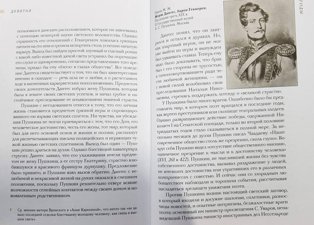 ОписаниеТруды о жизни и творчестве Александра Сергеевича Пушкина занимают значительное место в научном наследии Юрия Михайловича Лотмана. В 1993 году ученому была присуждена премия имени А. С. Пушкина за работы "Роман А. С. Пушкина "Евгений Онегин". Комментарий" и "Александр Сергеевич Пушкин. Биография писателя".В данном биографическом исследовании Лотман анализирует периоды жизни Пушкина: Царскосельский лицей, Петербург, две ссылки - на юг и в Михайловское, жизнь под надзором и стремление устроить семейный очаг, Болдинская осень, последние годы поэта - и проходящее сквозь каждую веху Творчество.Впервые опубликованная в начале 1980-х годов, эта книга интересна и современному читателю, желающему постичь феномен великого поэта. Настоящее издание иллюстрировано фотографиями пушкинских мест и репродукциями произведений искусства из собраний музеев, посвященных жизни и творчеству Пушкина: Всероссийского музея А. С. Пушкина, Государственного музея А. С. Пушкина, музея-заповедника "Михайловское". Помимо этого, в книгу включены автографы и рисунки из рабочих тетрадей Пушкина из собрания Рукописного отдела ИРЛИ РАН.СвернутьТруды о жизни и творчестве Александра Сергеевича Пушкина занимают значительное место в научном наследии Юрия Михайловича Лотмана. В 1993 году ученому была присуждена премия имени А. С. Пушкина за работы "Роман А. С. Пушкина "Евгений Онегин". Комментарий" и "Александр Сергеевич Пушкин. Биография писателя".В данном биографическом исследовании Лотман анализирует периоды жизни Пушкина: Царскосельский лицей, Петербург, две ссылки - на юг и в Михайловское, жизнь под надзором и стремление устроить семейный очаг, Болдинская осень, последние годы поэта - и проходящее сквозь каждую веху Творчество.Впервые опубликованная в начале 1980-х годов, эта книга интересна и современному читателю, желающему постичь феномен великого поэта. Настоящее издание иллюстрировано фотографиями пушкинских мест и репродукциями произведений искусства из собраний музеев, посвященных жизни и творчеству Пушкина: Всероссийского музея А. С. Пушкина, Государственного музея А. С. Пушкина, музея-заповедника "Михайловское". Помимо этого, в книгу включены автографы и рисунки из рабочих тетрадей Пушкина из собрания Рукописного отдела ИРЛИ РАН.СвернутьСвернуть