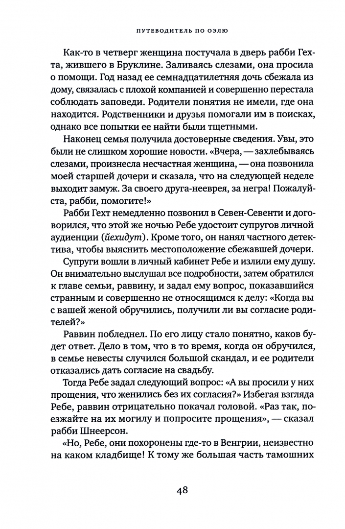 ОписаниеКаждый, кому посчастливилось общаться с Любавичским Ребе рабби Менахемом-Мендлом Шнеерсоном (1902-1994), рассказывает о его невероятной способности глубоко вникнуть в любую проблему, найти нужные слова и дать мудрый совет.После кончины Ребе люди, посещая его захоронение в оэле, по-прежнему обращаются с просьбами о помощи. И она приходит - свидетельством тому многочисленные реальные истории.Эта книга будет полезна всем, кто намеревается посетить оэль, чтобы помолиться на могиле Ребе, постараться понять и усвоить его идеалы, исправить какую-либо жизненную ситуацию, да и изменить самого себя - к лучшему.Каждый, кому посчастливилось общаться с Любавичским Ребе рабби Менахемом-Мендлом Шнеерсоном (1902-1994), рассказывает о его невероятной способности глубоко вникнуть в любую проблему, найти нужные слова и дать мудрый совет.После кончины Ребе люди, посещая его захоронение в оэле, по-прежнему обращаются с просьбами о помощи. И она приходит - свидетельством тому многочисленные реальные истории.Эта книга будет полезна всем, кто намеревается посетить оэль, чтобы помолиться на могиле Ребе, постараться понять и усвоить его идеалы, исправить какую-либо жизненную ситуацию, да и изменить самого себя - к лучшему.