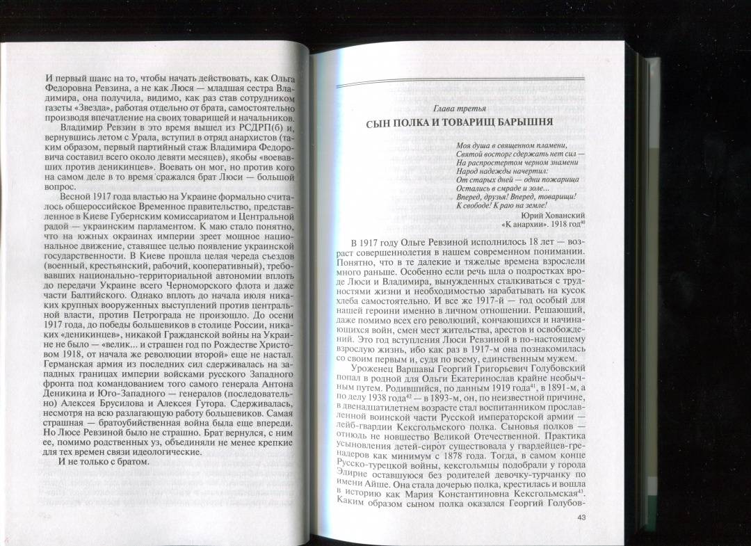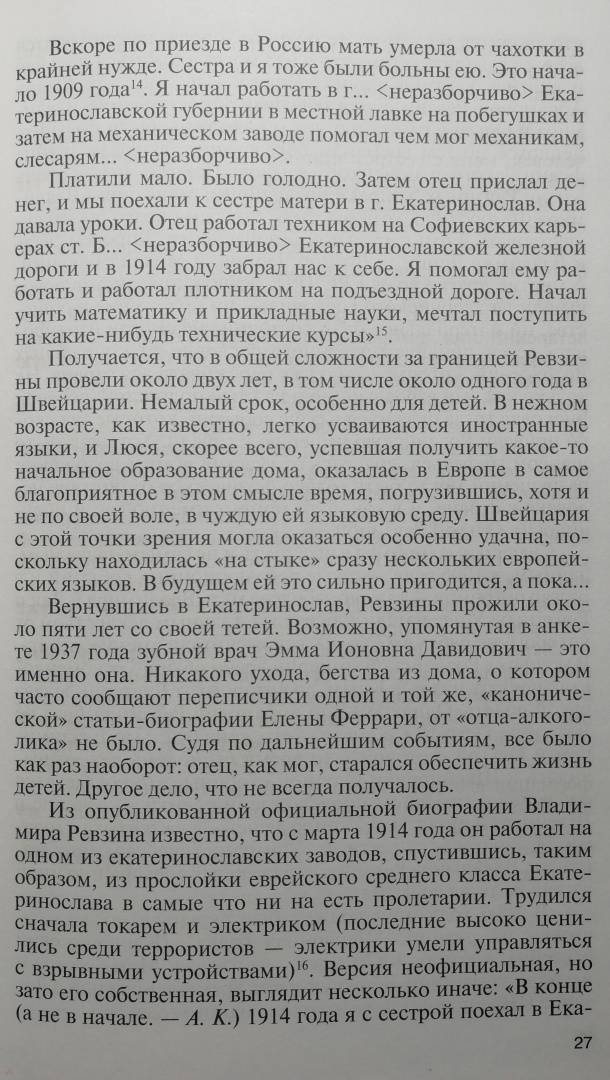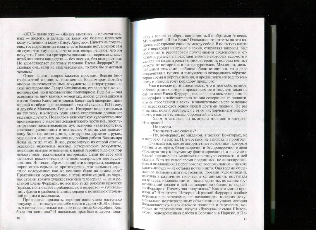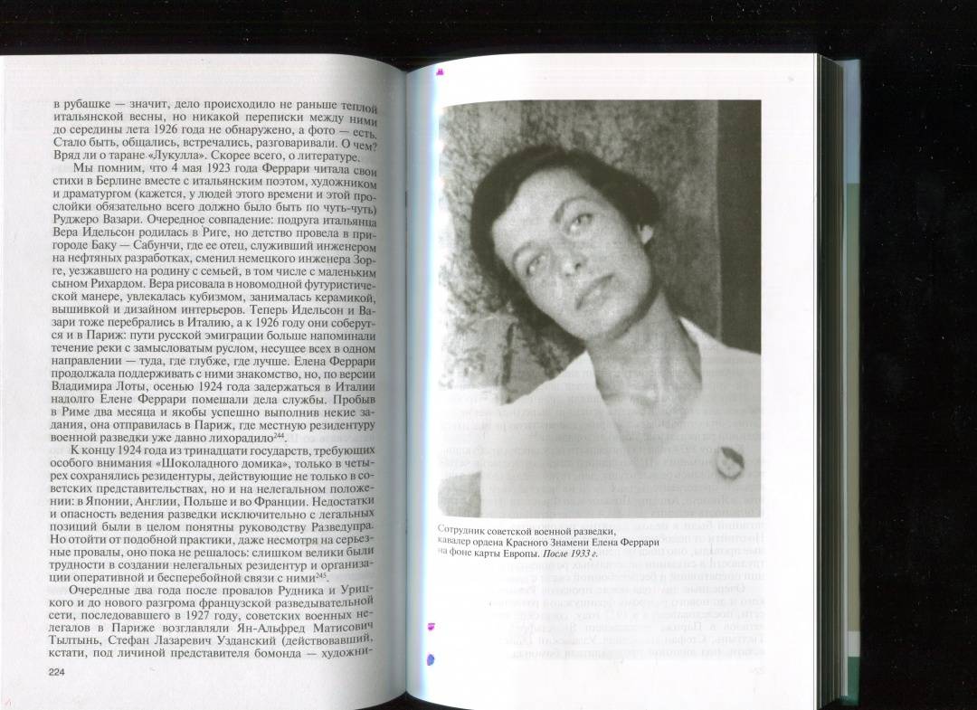 ОписаниеЕе звали Люся Ревзина, Ольга Голубовская, Елена Феррари. Еще имелись оперативные псевдонимы — «Люси», «Ольга», «Ирэн», были, вероятно, и другие. Мы знаем о ней далеко не всё, но и то, что установлено, заставляет задуматься. О том, например, какое отношение имела эта эффектная женщина с библейскими глазами к потоплению в 1921 году яхты генерала Врангеля «Лукулл», с легкостью приписанному на ее счет журналистами. И о ее роли в вербовке агентов для группы Рихарда Зорге в Токио. И о том, кем же она была на самом деле: террористкой, которую арестовывала ЧК еще в 1919-м, «преданным делу партии» агентом разведки или одной из последних поэтесс Серебряного века, дружившей с Горьким? Разочаровалась ли она в своем творчестве или принесла талант в жертву оперативной работе? И, возможно, главное: надо ли искать в ее судьбе подтверждения расхожей фразы «совпадений не бывает» или списать все несчастья на волю злого рока, без подозрений на заговор?..Ее звали Люся Ревзина, Ольга Голубовская, Елена Феррари. Еще имелись оперативные псевдонимы — «Люси», «Ольга», «Ирэн», были, вероятно, и другие. Мы знаем о ней далеко не всё, но и то, что установлено, заставляет задуматься. О том, например, какое отношение имела эта эффектная женщина с библейскими глазами к потоплению в 1921 году яхты генерала Врангеля «Лукулл», с легкостью приписанному на ее счет журналистами. И о ее роли в вербовке агентов для группы Рихарда Зорге в Токио. И о том, кем же она была на самом деле: террористкой, которую арестовывала ЧК еще в 1919-м, «преданным делу партии» агентом разведки или одной из последних поэтесс Серебряного века, дружившей с Горьким? Разочаровалась ли она в своем творчестве или принесла талант в жертву оперативной работе? И, возможно, главное: надо ли искать в ее судьбе подтверждения расхожей фразы «совпадений не бывает» или списать все несчастья на волю злого рока, без подозрений на заговор?..