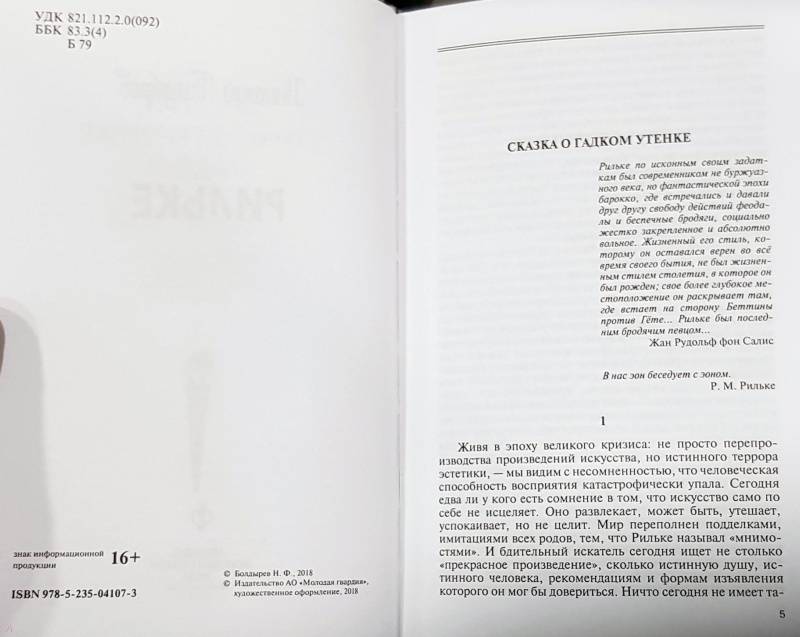 ОписаниеР. М. Рильке - один из крупнейших европейских поэтов, своим творчеством и своей личностью мощно повлиявший на ход развития мировой культуры, в том числе и русской. Так, Борис Пастернак за год до смерти характеризовал собственное творчество как вариации мотивов Рильке. Огромное влияние оказал Рильке и на Марину Цветаеву. При этом сам он испытывал столь же сильное воздействие русской литературной традиции, был лично знаком с Л. Н. Толстым, знал русский язык, читал в оригинале русскую классику. Автор этой книги, первой российской биографии Рильке, его переводчик и глубокий исследователь. Перед нами - не только наполненная внешними событиями жизнь поэта, но его духовный путь, его внутреннее возрастание.Р. М. Рильке - один из крупнейших европейских поэтов, своим творчеством и своей личностью мощно повлиявший на ход развития мировой культуры, в том числе и русской. Так, Борис Пастернак за год до смерти характеризовал собственное творчество как вариации мотивов Рильке. Огромное влияние оказал Рильке и на Марину Цветаеву. При этом сам он испытывал столь же сильное воздействие русской литературной традиции, был лично знаком с Л. Н. Толстым, знал русский язык, читал в оригинале русскую классику. Автор этой книги, первой российской биографии Рильке, его переводчик и глубокий исследователь. Перед нами - не только наполненная внешними событиями жизнь поэта, но его духовный путь, его внутреннее возрастание.