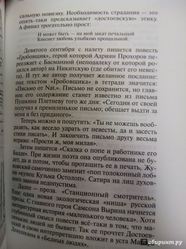 ОписаниеДля передвижения в пушкинском мире современному читателю, особенно молодому, нужен компас, считает писатель, доктор филологических наук, профессор МГУ Владимир Новиков, автор биографий Блока и Высоцкого в серии "ЖЗЛ". Таким компасом он видит свою новую работу - жизнеописание Александра Сергеевича Пушкина, представленное как опыт доступного повествования, из которого читатель может почерпнуть не концепции и гипотезы, а самые необходимые сведения. При этом автору удалось уловить динамику реальной судьбы великого русского поэта, вбирающей в себя и "труд упорный", и "все впечатленья бытия".Для передвижения в пушкинском мире современному читателю, особенно молодому, нужен компас, считает писатель, доктор филологических наук, профессор МГУ Владимир Новиков, автор биографий Блока и Высоцкого в серии "ЖЗЛ". Таким компасом он видит свою новую работу - жизнеописание Александра Сергеевича Пушкина, представленное как опыт доступного повествования, из которого читатель может почерпнуть не концепции и гипотезы, а самые необходимые сведения. При этом автору удалось уловить динамику реальной судьбы великого русского поэта, вбирающей в себя и "труд упорный", и "все впечатленья бытия".