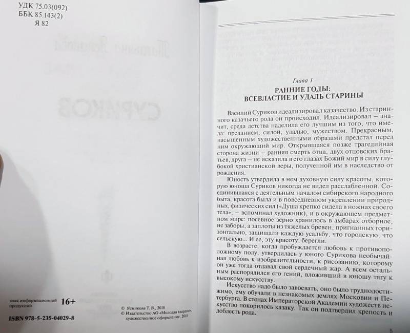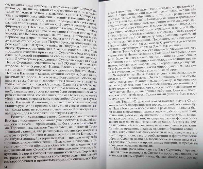 ОписаниеПолотна Василия Ивановича Сурикова (1848?1916), давно ставшие классикой, - "Утро стрелецкой казни", "Меншиков в Березове", "Боярыня Морозова", "Взятие снежного городка", "Покорение Ермаком Сибири", "Переход Суворова через Альпы", "Степан Разин" - будоражат по сей день, вызывая споры о судьбах отечества, его великих людях и великих мятежниках. Живопись Сурикова, яркую по исполнению, масштабную по мысли, народную по характеру, ценили как до революции, так и после, и будут ценить всегда - художник поднимал вековечные темы и решал их на уровне вечности, а не минутной политики, моды или кружка. Выходец из старинного казачьего рода первопроходцев Сибири, он был человеком "широкой палитры" - упорным, рисковым, деловым, озорным, брутальным, сентиментальным, прижимистым, великодушным, но никогда - мелким! И это многое объясняет в его профессиональной успешности. Автор книги, сибирский искусствовед Т. Ясникова, не отодвигает повседневную жизнь художника на второй план - это придает жизнеописанию объемность и живость, пусть даже иные авторские мнения и воззрения весьма полемичны. Судить - читателю.СвернутьПолотна Василия Ивановича Сурикова (1848?1916), давно ставшие классикой, - "Утро стрелецкой казни", "Меншиков в Березове", "Боярыня Морозова", "Взятие снежного городка", "Покорение Ермаком Сибири", "Переход Суворова через Альпы", "Степан Разин" - будоражат по сей день, вызывая споры о судьбах отечества, его великих людях и великих мятежниках. Живопись Сурикова, яркую по исполнению, масштабную по мысли, народную по характеру, ценили как до революции, так и после, и будут ценить всегда - художник поднимал вековечные темы и решал их на уровне вечности, а не минутной политики, моды или кружка. Выходец из старинного казачьего рода первопроходцев Сибири, он был человеком "широкой палитры" - упорным, рисковым, деловым, озорным, брутальным, сентиментальным, прижимистым, великодушным, но никогда - мелким! И это многое объясняет в его профессиональной успешности. Автор книги, сибирский искусствовед Т. Ясникова, не отодвигает повседневную жизнь художника на второй план - это придает жизнеописанию объемность и живость, пусть даже иные авторские мнения и воззрения весьма полемичны. Судить - читателю.СвернутьСвернуть