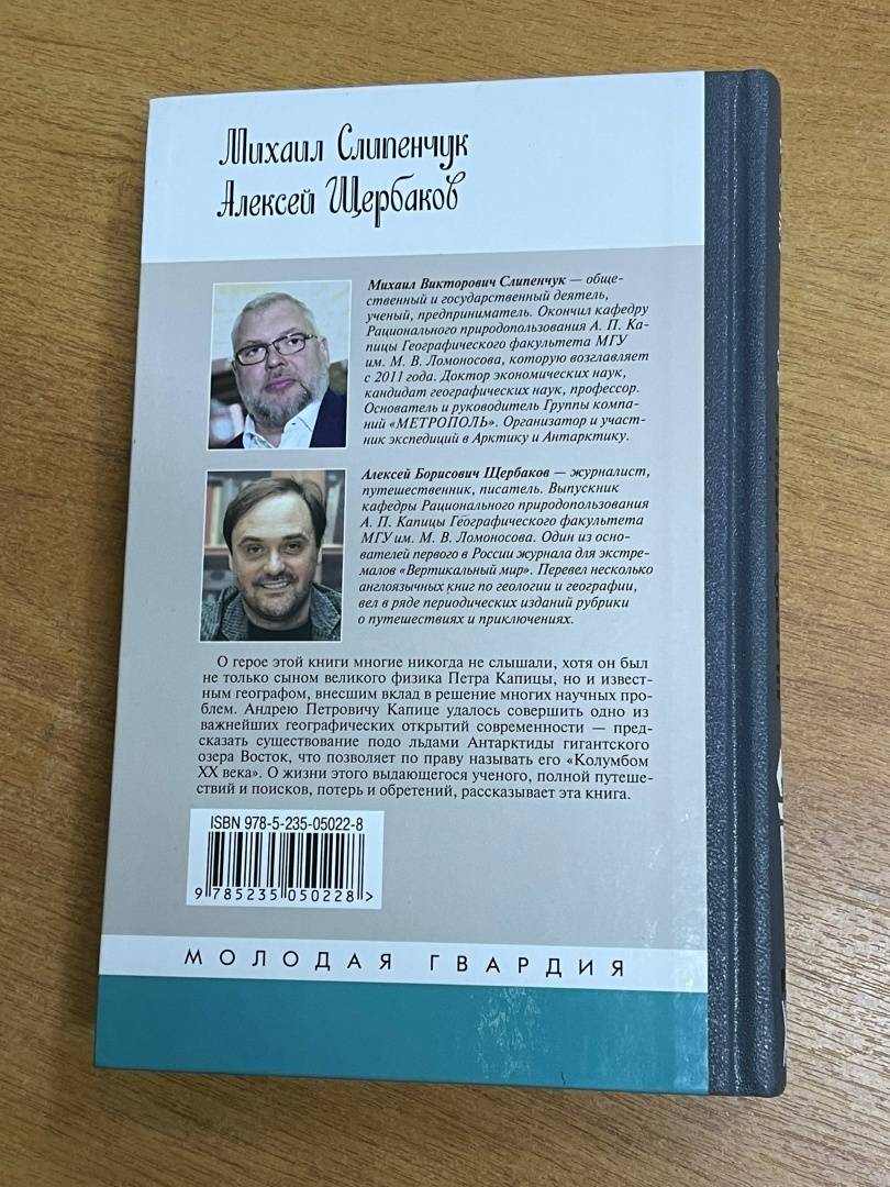 ОписаниеО герое этой книги многие никогда не слышали, хотя он был сыном великого физика Петра Капицы, известным географом, внесшим вклад в решение многих научных проблем. Андрею Петровичу Капице удалось совершить одно из важнейших географических открытий современности - предсказать существование подо льдами Антарктиды гигантского пресноводного озера, что позволяет по праву называть его "Колумбом ХХ века". О жизни этого выдающегося ученого, полной путешествий и поисков, потерь и обретений, рассказывает его первая подробная биография, которую на основе семейного архива А. П. Капицы создали Михаил Слипенчук и Алексей Щербаков.О герое этой книги многие никогда не слышали, хотя он был сыном великого физика Петра Капицы, известным географом, внесшим вклад в решение многих научных проблем. Андрею Петровичу Капице удалось совершить одно из важнейших географических открытий современности - предсказать существование подо льдами Антарктиды гигантского пресноводного озера, что позволяет по праву называть его "Колумбом ХХ века". О жизни этого выдающегося ученого, полной путешествий и поисков, потерь и обретений, рассказывает его первая подробная биография, которую на основе семейного архива А. П. Капицы создали Михаил Слипенчук и Алексей Щербаков.