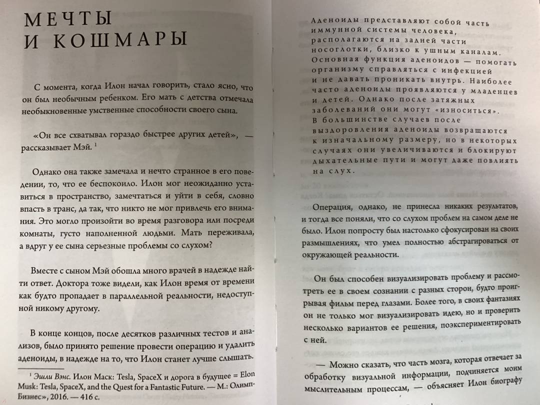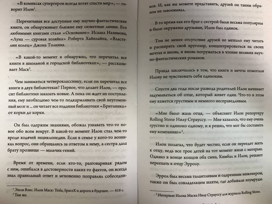 Илон Маск - инноватор SpaceX и генеральный директор компании по производству электромобилей Tesla. Он разрабатывает невообразимые и уникальные новшества в области общественного транспорта и находит новые способы использования солнечной энергии, а также строит грандиозные планы колонизации Марса...Но за сногсшибательными заголовками и невероятными планами скрывается история запуганного мальчика, который с помощью творчества и упорства решил переписать историю и найти свой способ сделать мир лучше.Илон Маск всегда придерживался особого пути: от организации вечеринок до оплаты обучения в колледже и изменения правил путешествий в космос, - он всегда принимал нестандартные, почти шокирующие решения для реорганизации каждого из аспектов своей жизни. Он - герой нашего времени.Гений настоящей эпохи, способный написать иную внеземную историю человечества! -
