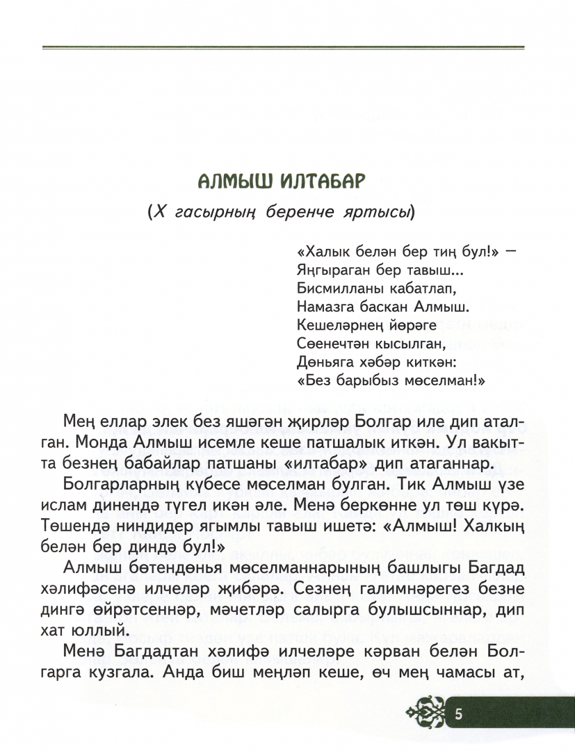 ОписаниеӘлеге китап вакыт ягыннан X–XVIII йөзләрне колачлый һәм татар халкының таҗы булган олуг шәхесләр – дәүләт ирәннәре, шагыйрьләр, халык күтәрелеше юлбашчылары турында бәян итә.Әлеге китап вакыт ягыннан X–XVIII йөзләрне колачлый һәм татар халкының таҗы булган олуг шәхесләр – дәүләт ирәннәре, шагыйрьләр, халык күтәрелеше юлбашчылары турында бәян итә.