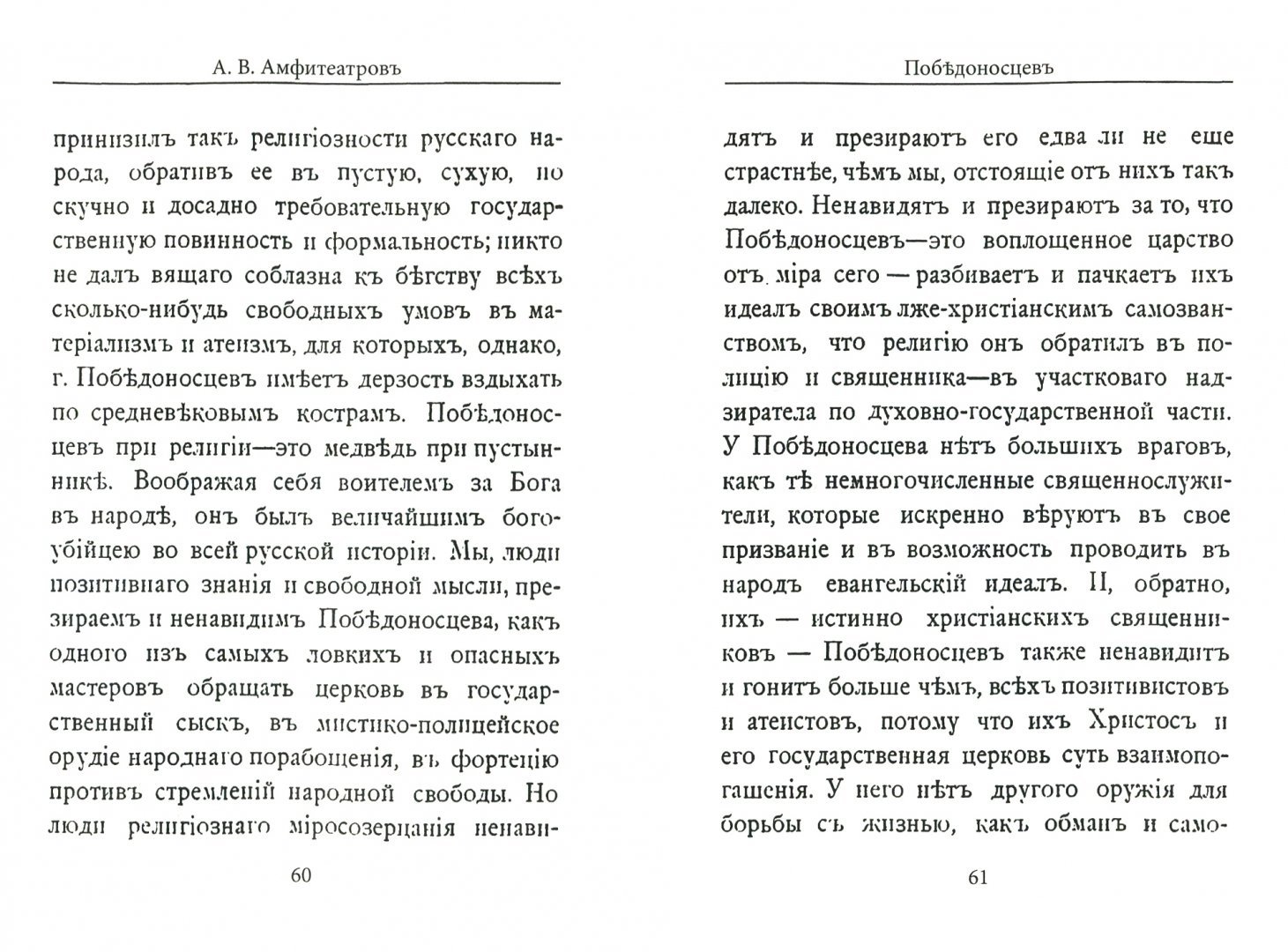 ОписаниеАлександр Валентинович Амфитеатров (1962-1938) - известный журналист и писатель своего времени, его прозу можно с уверенностью отнести к литературе исконно русской и талантливой.В данном издании представлено два публицистических очерка об известном писателе, правоведе и политическом деятеле Константине Петровиче Победоносцеве, написанные А. Амфитеатровым и Е. Аничковым. Данные очерки представляют собой прекрасную возможность заглянуть в Россию прошлого века и познакомиться с историческими персонажами того времени.Александр Валентинович Амфитеатров (1962-1938) - известный журналист и писатель своего времени, его прозу можно с уверенностью отнести к литературе исконно русской и талантливой.В данном издании представлено два публицистических очерка об известном писателе, правоведе и политическом деятеле Константине Петровиче Победоносцеве, написанные А. Амфитеатровым и Е. Аничковым. Данные очерки представляют собой прекрасную возможность заглянуть в Россию прошлого века и познакомиться с историческими персонажами того времени.