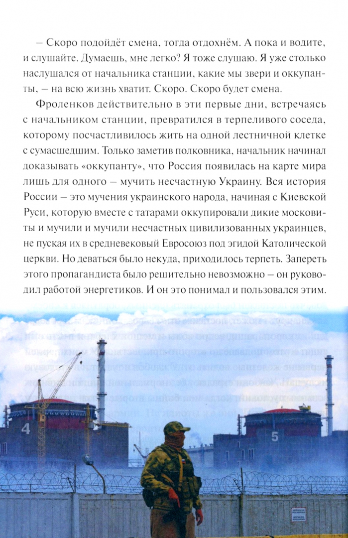ОписаниеБлагодаря смелым и решительным действиям полковника Фроленкова на территории Украины был взят под контроль без единого выстрела важный объект - Чернобыльская АЭС. Ему удалось выполнить поставленную командованием задачу и сохранить жизни сотен военнослужащих и гражданских лиц. Об этом наш рассказ. Он подготовлен совместно с редакцией журнала Росгвардии "На боевом посту". Мы выражаем искреннюю благодарность коллективу редакции журнала за предоставленные материалы, фотографии и консультации при подготовке книги.Благодаря смелым и решительным действиям полковника Фроленкова на территории Украины был взят под контроль без единого выстрела важный объект - Чернобыльская АЭС. Ему удалось выполнить поставленную командованием задачу и сохранить жизни сотен военнослужащих и гражданских лиц. Об этом наш рассказ. Он подготовлен совместно с редакцией журнала Росгвардии "На боевом посту". Мы выражаем искреннюю благодарность коллективу редакции журнала за предоставленные материалы, фотографии и консультации при подготовке книги.