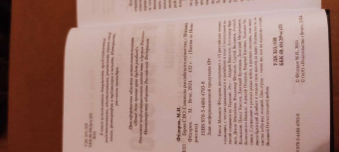ОписаниеКнига Михаила Фёдорова рассказывает о 13 российских военнослужащих, с честью сражавшихся и погибших в ходе Специальной военной операции на Украине. Это - Андрей Вакулин, Александр Крынин, Денис Михайлов, Владимир Фетисов, Сергей Волынец, Алексей Калмыков, Павел Хмелев, Дмитрий Кузнецов, Дмитрий Митрофанов, Константин Вояжис, Алексей Ненахов, Георгий Евсенко, Канамат Боташев. Служившие в разных родах войск, в разных званиях, они защищали братский Донбасс и отдали свои жизни за нашу безопасность, за чистое небо над головой. Они герои - такие же, как их прадеды в годы Великой Отечественной войны.Книга Михаила Фёдорова рассказывает о 13 российских военнослужащих, с честью сражавшихся и погибших в ходе Специальной военной операции на Украине. Это - Андрей Вакулин, Александр Крынин, Денис Михайлов, Владимир Фетисов, Сергей Волынец, Алексей Калмыков, Павел Хмелев, Дмитрий Кузнецов, Дмитрий Митрофанов, Константин Вояжис, Алексей Ненахов, Георгий Евсенко, Канамат Боташев. Служившие в разных родах войск, в разных званиях, они защищали братский Донбасс и отдали свои жизни за нашу безопасность, за чистое небо над головой. Они герои - такие же, как их прадеды в годы Великой Отечественной войны.