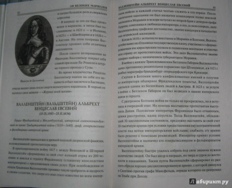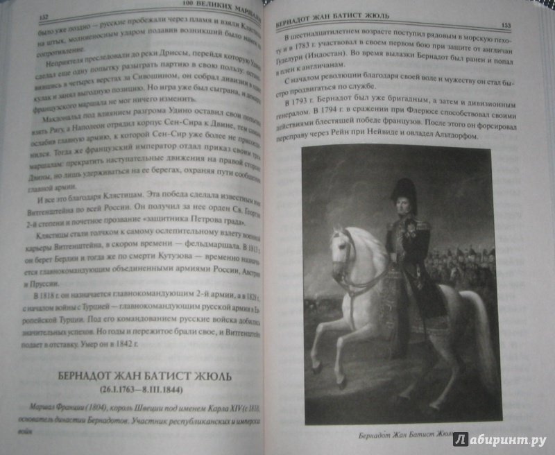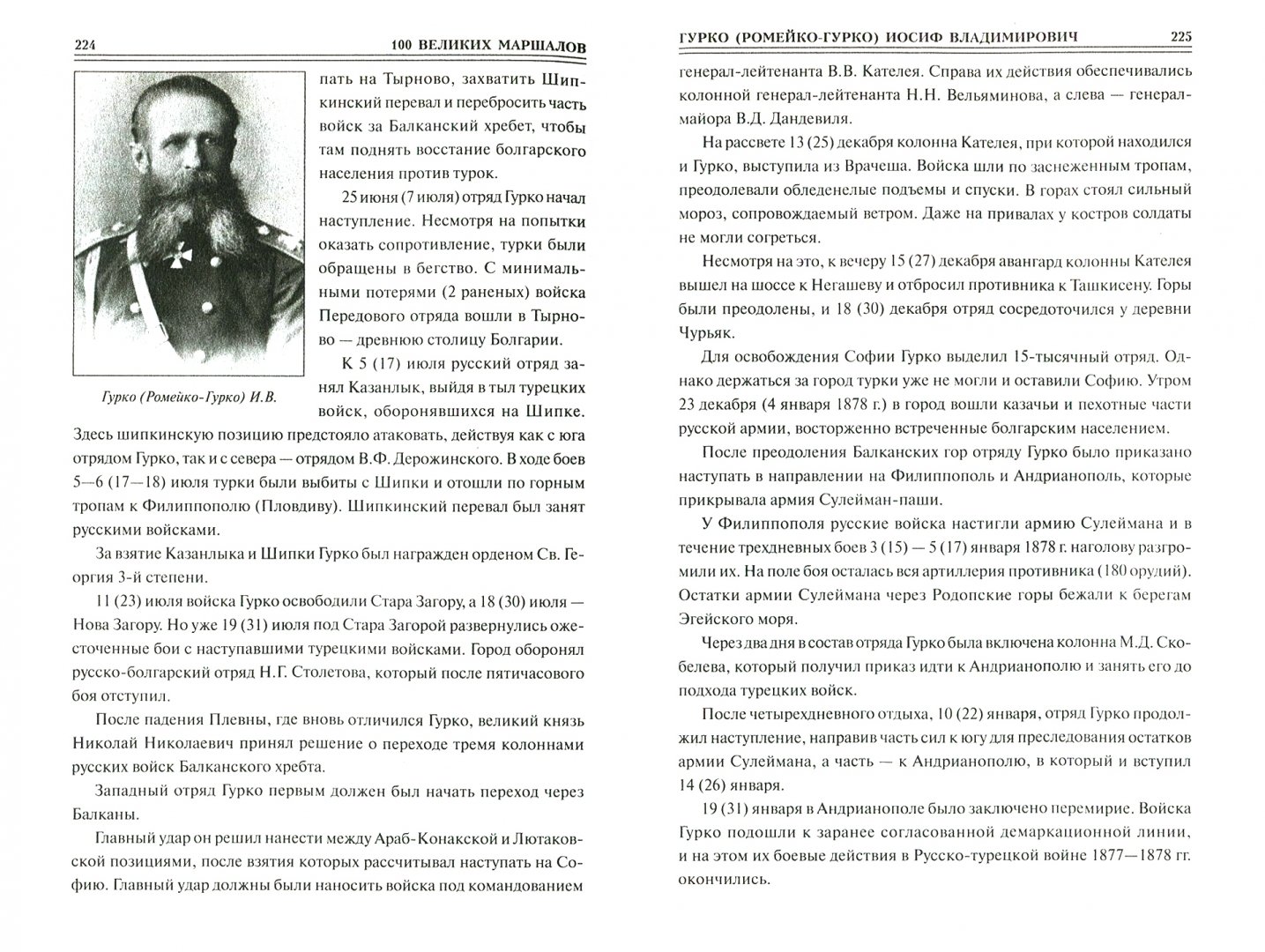 ОписаниеМаршал - воинское звание (или чин) высшего генеральского состава в армиях ряда государств. В России генерал-фельдмаршал было высшим воинским званием до 1917 года.Звание маршала в армии впервые стали использовать в Тевтонском ордене; отсюда появилось наименование фельдмаршала, сначала для полковников кавалерии. Во Франции маршал, ведавший королевской конюшней, прежде был в подчинении интенданта, но уже при Филиппе-Августе это звание относилось к главнокомандующему королевскими войсками.Звание генерал-фельдмаршала появилось в Германии в XVI веке и обозначало высшее воинское звание в сухопутных войсках немецкой и австрийской армий. Во Франции и некоторых других государствах ему соответствовало воинское звание маршала (маршала-генерала).О ста самых выдающихся маршалах различных стран и эпох, прославивших свои армии и народы, рассказывает очередная книга серии.Маршал - воинское звание (или чин) высшего генеральского состава в армиях ряда государств. В России генерал-фельдмаршал было высшим воинским званием до 1917 года.Звание маршала в армии впервые стали использовать в Тевтонском ордене; отсюда появилось наименование фельдмаршала, сначала для полковников кавалерии. Во Франции маршал, ведавший королевской конюшней, прежде был в подчинении интенданта, но уже при Филиппе-Августе это звание относилось к главнокомандующему королевскими войсками.Звание генерал-фельдмаршала появилось в Германии в XVI веке и обозначало высшее воинское звание в сухопутных войсках немецкой и австрийской армий. Во Франции и некоторых других государствах ему соответствовало воинское звание маршала (маршала-генерала).О ста самых выдающихся маршалах различных стран и эпох, прославивших свои армии и народы, рассказывает очередная книга серии.