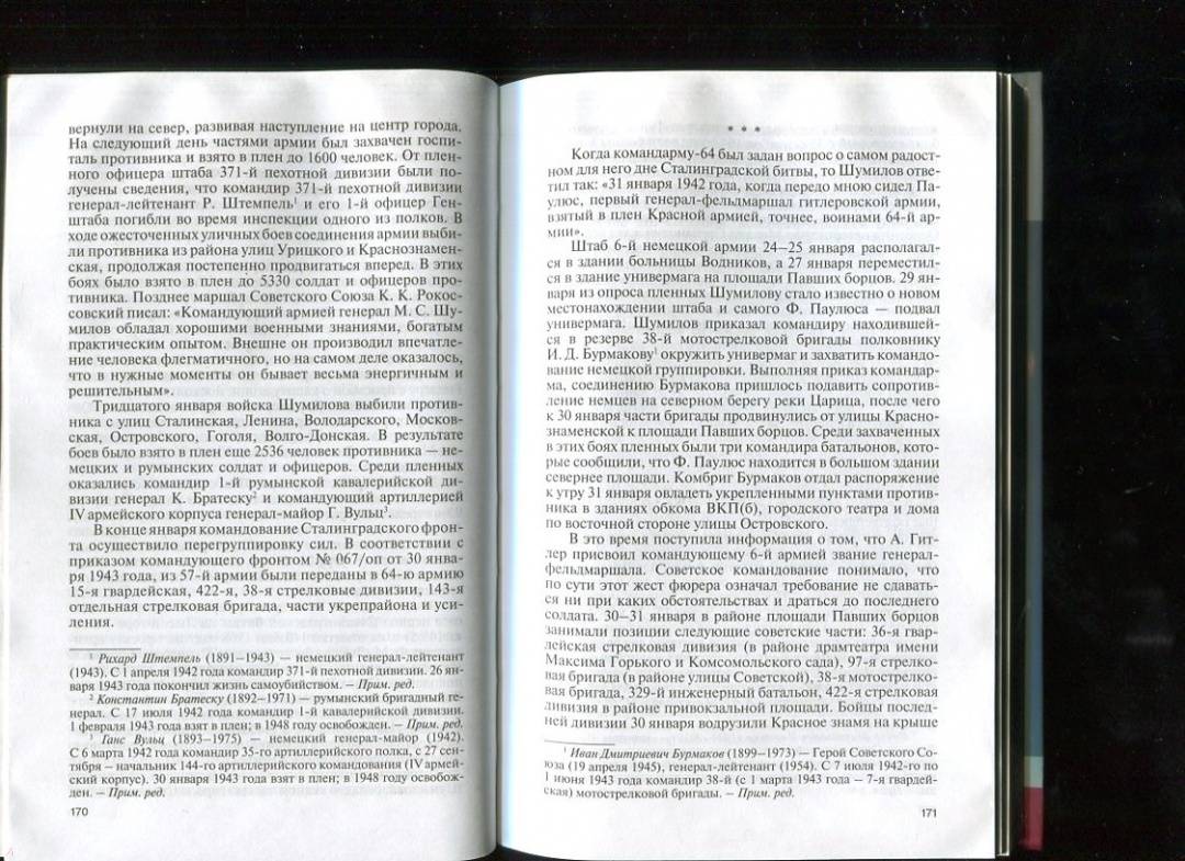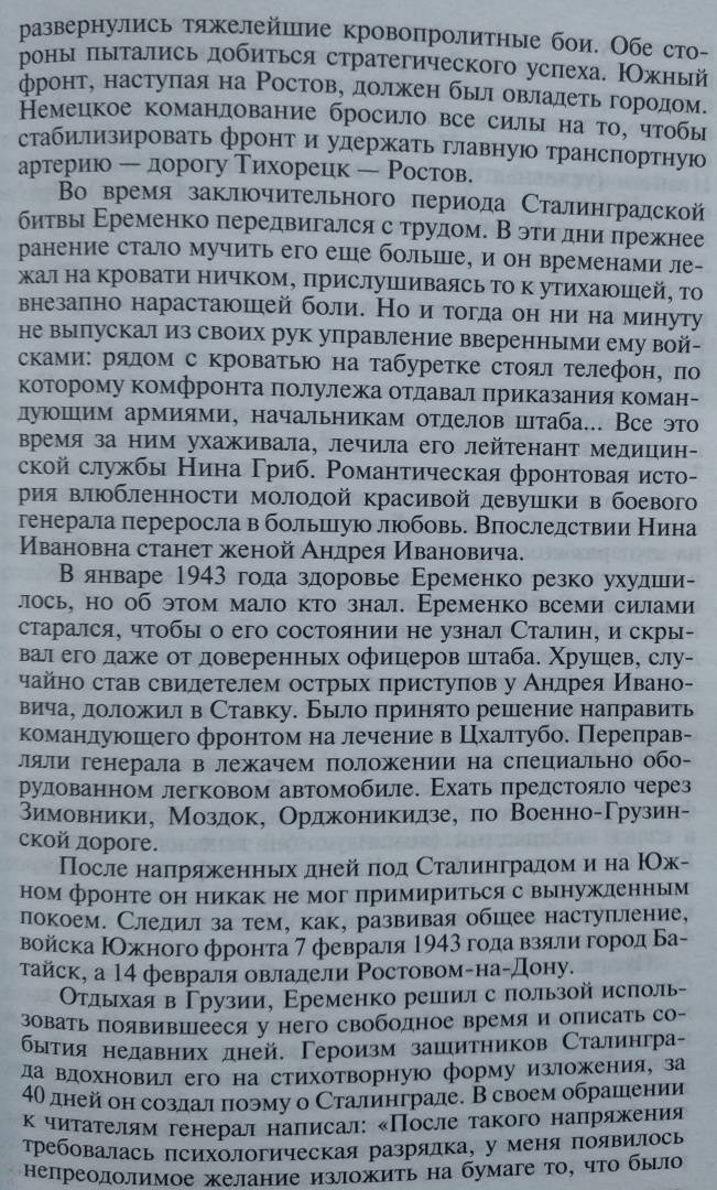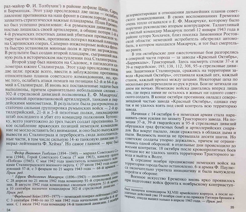 ОписаниеВ ряду величайших сражений, в которых участвовала и победила наша страна, особое место занимает Сталинградская битва - коренной перелом в ходе Второй мировой войны. Среди литературы, посвященной этой великой победе, выделяются воспоминания ее участников - от маршалов и генералов до солдат. В этих мемуарах есть лишь один недостаток - авторы почти ничего не пишут о себе. Вы не найдете у них слов и оценок того, каков был их личный вклад в победу над врагом, какого колоссального напряжения и сил стоила им война. Поэтому главная цель этой книги - достоверно и по возможности всесторонне показать воинский талант, масштаб личности, человеческие качества и черты характера, высветить роль каждого героя Сталинградской битвы. Еременко Андрей Иванович, Чуйков Василий Иванович, Шумилов Михаил Степанович, Родимцев Александр Ильич, Людников Иван Ильич, Павлов Яков Федотович, Зайцев Василий Григорьевич… Их имена переплавились в историческое наследие нашей родины, они стали символом Победы и хранятся в памяти народной.СвернутьВ ряду величайших сражений, в которых участвовала и победила наша страна, особое место занимает Сталинградская битва - коренной перелом в ходе Второй мировой войны. Среди литературы, посвященной этой великой победе, выделяются воспоминания ее участников - от маршалов и генералов до солдат. В этих мемуарах есть лишь один недостаток - авторы почти ничего не пишут о себе. Вы не найдете у них слов и оценок того, каков был их личный вклад в победу над врагом, какого колоссального напряжения и сил стоила им война. Поэтому главная цель этой книги - достоверно и по возможности всесторонне показать воинский талант, масштаб личности, человеческие качества и черты характера, высветить роль каждого героя Сталинградской битвы. Еременко Андрей Иванович, Чуйков Василий Иванович, Шумилов Михаил Степанович, Родимцев Александр Ильич, Людников Иван Ильич, Павлов Яков Федотович, Зайцев Василий Григорьевич… Их имена переплавились в историческое наследие нашей родины, они стали символом Победы и хранятся в памяти народной.СвернутьСвернуть