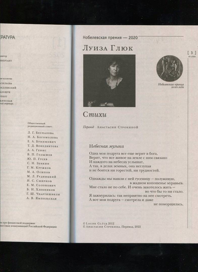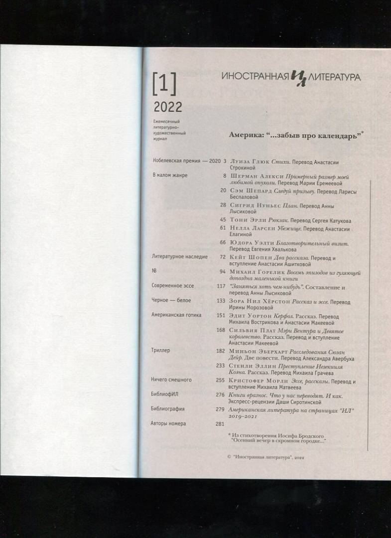 Журнал "Иностранная литература", 2022. № 1