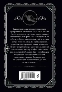 ОписаниеЗа роскошно накрытым столом ресторана, сервированным на семерых, сидят шесть человек. Напротив седьмого, пустующего места одиноко стоит веточка розмарина. Она знаменует память о Розмари Бартон, внезапно умершей за этим же столом ровно год назад. Не в силах пережить депрессию, она отравилась цианистым калием. Но есть по крайней мере один человек, который считает иначе, поэтому и собрал снова вместе всех свидетелей той смерти. Это — муж Розмари, получивший анонимное письмо о том, что его жену отравили. Однако он даже не представляет, чем закончится для него это расследование…За роскошно накрытым столом ресторана, сервированным на семерых, сидят шесть человек. Напротив седьмого, пустующего места одиноко стоит веточка розмарина. Она знаменует память о Розмари Бартон, внезапно умершей за этим же столом ровно год назад. Не в силах пережить депрессию, она отравилась цианистым калием. Но есть по крайней мере один человек, который считает иначе, поэтому и собрал снова вместе всех свидетелей той смерти. Это — муж Розмари, получивший анонимное письмо о том, что его жену отравили. Однако он даже не представляет, чем закончится для него это расследование…