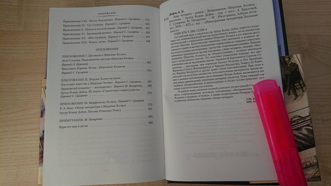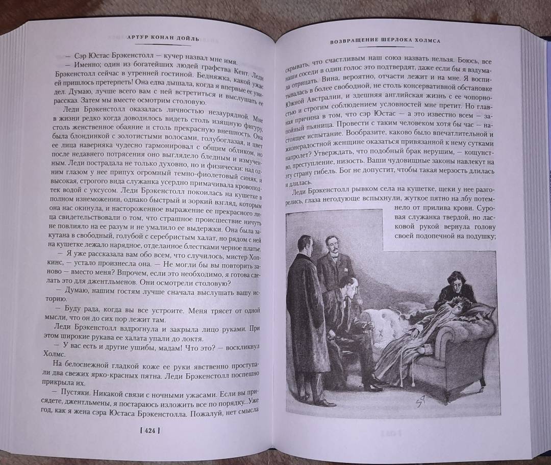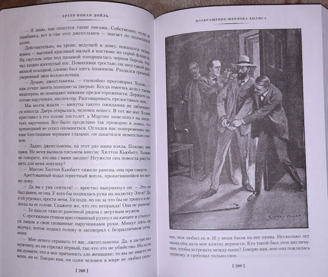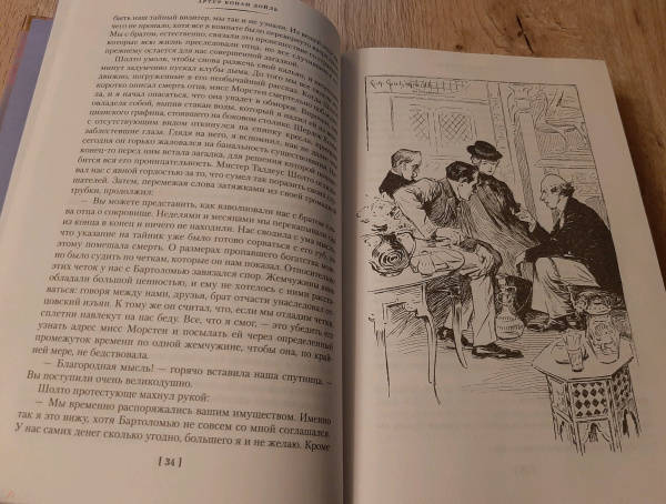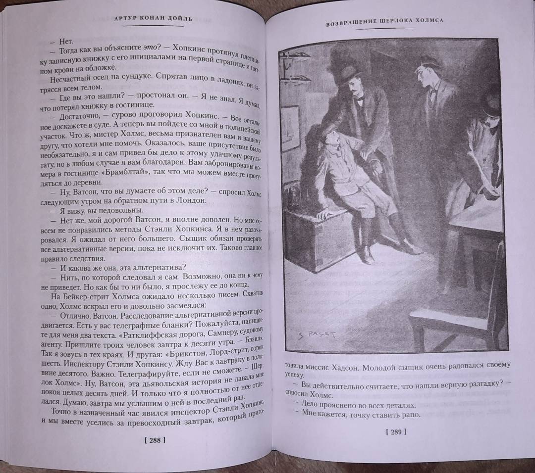 ОписаниеАнглийский врач и писатель сэр Артур Конан Дойль известен всему миру как непревзойденный мастер детективного жанра, автор множества произведений о гениальном сыщике Шерлоке Холмсе и его верном друге докторе Ватсоне. Классические переводы этих рассказов и романов, делавшиеся давно и множеством разных переводчиков, страдают известными недостатками: расхождения, пропуски, откровенные ошибки. Вашему вниманию предлагается третий том (роман "Знак четырех", сборник "Возвращение Шерлока Холмса") из четырехтомника с полным переводом всего холмсовского канона. Это воистину уникальное издание: все произведения цикла переведены заново Людмилой Бриловой и Сергеем Сухаревым - мастерами, чьи переводы Кадзуо Исигуро и Рэя Брэдбери, Фрэнсиса Скотта Фицджеральда и Чарльза Паллисера, Томаса Де Квинси, Германа Мелвилла и других давно стали классическими. При этом в каждый том включено множество дополнительных материалов: предисловия к ранним публикациям, воспоминания Конан Дойля, касающиеся тех или иных произведений, некоторые интервью писателя. Плюс каждый том снабжен обширнейшими комментариями и богато иллюстрирован лучшими классическими рисунками.В данную книгу включен полный комплект иллюстраций Сидни Пэджета, сопровождавших исходную публикацию "Возвращения Шерлока Холмса" в журнале "Стрэнд", а также иллюстрации Рихарда Гутшмидта к раннему немецкому изданию "Знака четырех".СвернутьАнглийский врач и писатель сэр Артур Конан Дойль известен всему миру как непревзойденный мастер детективного жанра, автор множества произведений о гениальном сыщике Шерлоке Холмсе и его верном друге докторе Ватсоне. Классические переводы этих рассказов и романов, делавшиеся давно и множеством разных переводчиков, страдают известными недостатками: расхождения, пропуски, откровенные ошибки. Вашему вниманию предлагается третий том (роман "Знак четырех", сборник "Возвращение Шерлока Холмса") из четырехтомника с полным переводом всего холмсовского канона. Это воистину уникальное издание: все произведения цикла переведены заново Людмилой Бриловой и Сергеем Сухаревым - мастерами, чьи переводы Кадзуо Исигуро и Рэя Брэдбери, Фрэнсиса Скотта Фицджеральда и Чарльза Паллисера, Томаса Де Квинси, Германа Мелвилла и других давно стали классическими. При этом в каждый том включено множество дополнительных материалов: предисловия к ранним публикациям, воспоминания Конан Дойля, касающиеся тех или иных произведений, некоторые интервью писателя. Плюс каждый том снабжен обширнейшими комментариями и богато иллюстрирован лучшими классическими рисунками.В данную книгу включен полный комплект иллюстраций Сидни Пэджета, сопровождавших исходную публикацию "Возвращения Шерлока Холмса" в журнале "Стрэнд", а также иллюстрации Рихарда Гутшмидта к раннему немецкому изданию "Знака четырех".СвернутьСвернуть