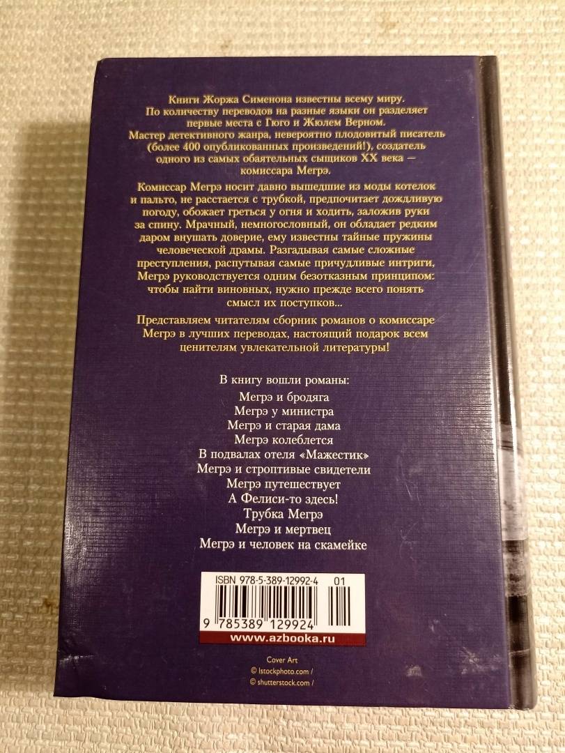 ОписаниеКниги Жоржа Сименона известны всему миру. По количеству переводов на разные языки он разделяет первые места с Гюго и Жюлем Верном. Мастер детективного жанра, невероятно плодовитый писатель (более 400 опубликованных произведений!), создатель одного из самых обаятельных сыщиков ХХ века — комиссара Мегрэ. Комиссар Мегрэ носит давно вышедшие из моды котелок и пальто, не расстается с трубкой, предпочитает дождливую погоду, обожает греться у огня и ходить, заложив руки за спину. Мрачный, немногословный, он обладает редким даром внушать доверие, ему известны тайные пружины человеческой драмы. Разгадывая самые сложные преступления, распутывая самые причудливые интриги, Мегрэ руководствуется одним безотказным принципом: чтобы найти виновных, нужно прежде всего понять смысл их поступков… Представляем читателям сборник романов о комиссаре Мегрэ в лучших переводах, настоящий подарок всем ценителям увлекательной литературы!Книги Жоржа Сименона известны всему миру. По количеству переводов на разные языки он разделяет первые места с Гюго и Жюлем Верном. Мастер детективного жанра, невероятно плодовитый писатель (более 400 опубликованных произведений!), создатель одного из самых обаятельных сыщиков ХХ века — комиссара Мегрэ. Комиссар Мегрэ носит давно вышедшие из моды котелок и пальто, не расстается с трубкой, предпочитает дождливую погоду, обожает греться у огня и ходить, заложив руки за спину. Мрачный, немногословный, он обладает редким даром внушать доверие, ему известны тайные пружины человеческой драмы. Разгадывая самые сложные преступления, распутывая самые причудливые интриги, Мегрэ руководствуется одним безотказным принципом: чтобы найти виновных, нужно прежде всего понять смысл их поступков… Представляем читателям сборник романов о комиссаре Мегрэ в лучших переводах, настоящий подарок всем ценителям увлекательной литературы!