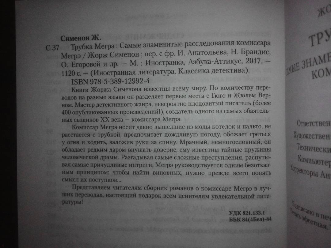 --Жорж Сименон: Трубка Мегрэ. Самые знаменитые расследования комиссара МегрэРусская классическая и современная литератураЗарубежная художественная литератураРусская художественная литератураФэнтезиДраматургияПоэзияПриключенияФантастикаЭпос и фольклорКлассическая прозаАфоризмыИсторическая прозаДетективыБасниСентиментальная прозаОтечественный боевикСовременная прозаМолодежная литератураЗарубежная классическая и современная литература