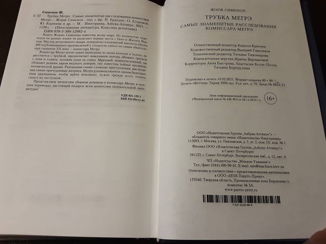 Объем, стр. 1120 ISBN 978-5-389-12992-4 Автор Сименон Жорж, Брандис Н. М., Егорова О. И., Корнеев Юрий Борисович Переводчик Брандис Н. М., Егорова О. И., Корнеев Юрий Борисович Серия Иностранная литература. Классика детектива Язык Русский Минимальный возраст 16+ Год издания книги 2021 Тип обложки Твердый переплет Иллюстрации Без иллюстраций Вес, г 1080г Размеры 217х147х51 мм - Отзывы