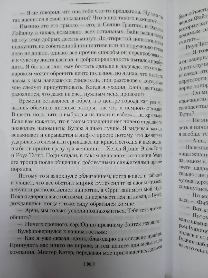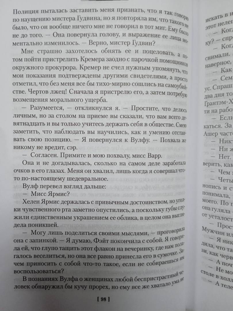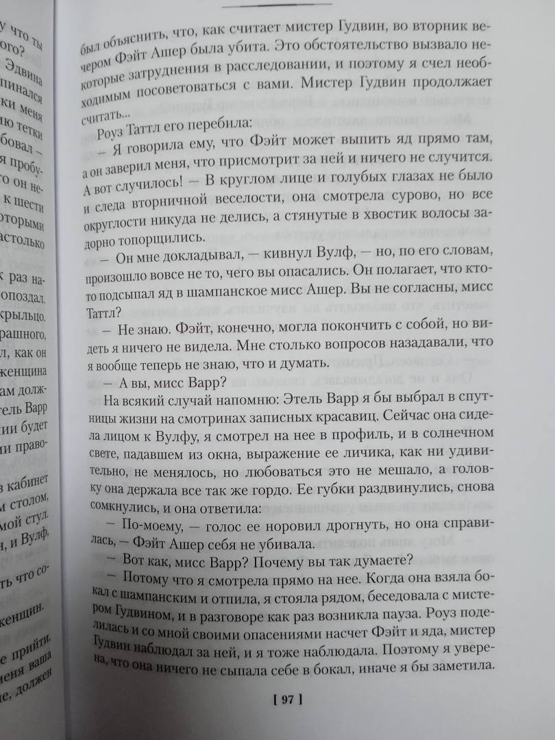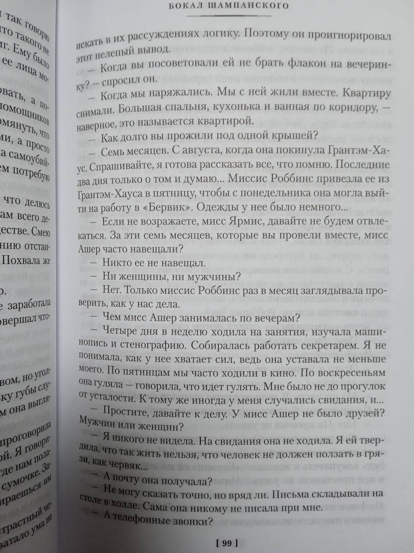 ОписаниеНиро Вулф, страстный коллекционер орхидей, большой гурман, любитель пива и великий сыщик, практически никогда не выходит из дому. Все преступления он распутывает на основе тех фактов, которые собирает Арчи Гудвин, его обаятельный, ироничный помощник с отличной памятью. На ежегодный благотворительный прием у миллионерши приглашены несколько девушек, родивших детей вне брака, и такое же количество молодых людей, и среди них Арчи Гудвин. В перерыве между танцами одна из девушек, выпив шампанского, умирает. При этом многие знают, что она постоянно носит с собой пузырек с ядом. Полиция и все гости считают это самоубийством, и только Гудвин настаивает на том, что девушку убили. Вулф берется за дело, чтобы доказать правоту Арчи… Знаменитый детектив сталкивается с необычной ситуацией, когда к нему с просьбой о помощи обращаются члены комитета по борьбе с плагиатом. Проблема в том, что каждый раз после выхода нового бестселлера объявляется малоизвестный писатель, обвиняющий автора книги в краже сюжета. Вулф берется найти афериста, но очень скоро дело о плагиате превращается в дело об убийстве… Кроме романов «Бокал шампанского» и «Сочиняйте сами», в книгу вошли еще три повести, в которых Вулф должен найти убийцу, чтобы снять с Арчи обвинение в сокрытии улик и препятствовании правосудию.СвернутьНиро Вулф, страстный коллекционер орхидей, большой гурман, любитель пива и великий сыщик, практически никогда не выходит из дому. Все преступления он распутывает на основе тех фактов, которые собирает Арчи Гудвин, его обаятельный, ироничный помощник с отличной памятью. На ежегодный благотворительный прием у миллионерши приглашены несколько девушек, родивших детей вне брака, и такое же количество молодых людей, и среди них Арчи Гудвин. В перерыве между танцами одна из девушек, выпив шампанского, умирает. При этом многие знают, что она постоянно носит с собой пузырек с ядом. Полиция и все гости считают это самоубийством, и только Гудвин настаивает на том, что девушку убили. Вулф берется за дело, чтобы доказать правоту Арчи… Знаменитый детектив сталкивается с необычной ситуацией, когда к нему с просьбой о помощи обращаются члены комитета по борьбе с плагиатом. Проблема в том, что каждый раз после выхода нового бестселлера объявляется малоизвестный писатель, обвиняющий автора книги в краже сюжета. Вулф берется найти афериста, но очень скоро дело о плагиате превращается в дело об убийстве… Кроме романов «Бокал шампанского» и «Сочиняйте сами», в книгу вошли еще три повести, в которых Вулф должен найти убийцу, чтобы снять с Арчи обвинение в сокрытии улик и препятствовании правосудию.СвернутьСвернуть