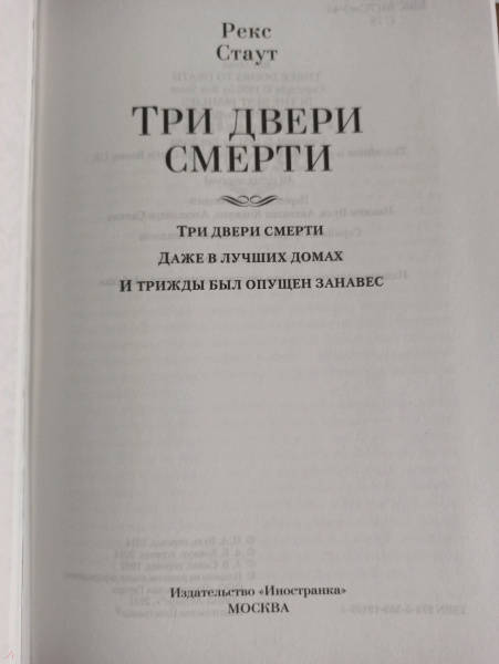 --Рекс Стаут: Три двери смертиРусская классическая и современная литератураЗарубежная художественная литератураРусская художественная литератураФэнтезиДраматургияПоэзияПриключенияФантастикаЭпос и фольклорКлассическая прозаАфоризмыИсторическая прозаДетективыБасниСентиментальная прозаОтечественный боевикСовременная прозаМолодежная литератураЗарубежная классическая и современная литература
