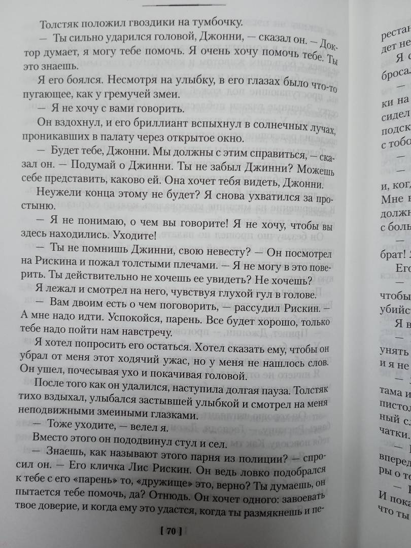 ОписаниеЗа полвека писательской деятельности Джеймс Хэдли Чейз, признанный мастер захватывающего сюжета и классик детективного жанра, создал порядка 90 романов, больше половины из которых было экранизировано. Среди его излюбленных персонажей - пестрая журналистская братия, все эти шальные ребята, которые суют нос в чужие дела, нарываясь на неприятности. И, как в романах "У мертвых не спросишь" и "Репортер", вынуждены порой преступать закон, играя по чужим правилам. Вне закона оказывается и герой романа "Только за наличные", боксер Джонни Фаррар, который в мечтах сорвать "большой куш" отправляется в Майами (на русском языке роман выходил также под названием "Капкан для Джонни").За полвека писательской деятельности Джеймс Хэдли Чейз, признанный мастер захватывающего сюжета и классик детективного жанра, создал порядка 90 романов, больше половины из которых было экранизировано. Среди его излюбленных персонажей - пестрая журналистская братия, все эти шальные ребята, которые суют нос в чужие дела, нарываясь на неприятности. И, как в романах "У мертвых не спросишь" и "Репортер", вынуждены порой преступать закон, играя по чужим правилам. Вне закона оказывается и герой романа "Только за наличные", боксер Джонни Фаррар, который в мечтах сорвать "большой куш" отправляется в Майами (на русском языке роман выходил также под названием "Капкан для Джонни").