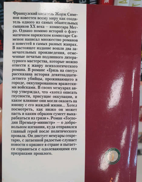 Роман «Господин Премьер-министр» — о добровольном изгнании, в которое отправился главный герой после политического провала. Он диктует мемуары секретарю, с затаенной радостью слушает новости о кризисе в стране и пытается справиться с одолевающими его призраками прошлого.СвернутьФранцузский писатель Жорж Сименон известен всему миру как создатель одного из самых обаятельных сыщиков ХХ века — комиссара Мегрэ. Однако помимо историй о флегматичном парижском комиссаре Сименон написал множество романов и повестей в самых разных жанрах. В настоящие издание вошли два замечательных произведения, отмеченные печатью подлинного литературного мастерства, которые можно отнести к жанру психологического романа.