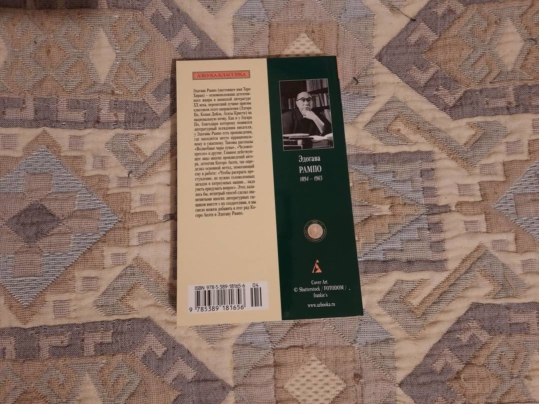 ОписаниеЭдогава Рампо (настоящее имя Таро Хираи) - основоположник детективного жанра в японской литературе XX века, перенесший лучшие приемы классиков этого направления (Эдгара По, Конан Дойла, Агаты Кристи) на национальную почву. Как и у Эдгара По, благодаря которому появился литературный псевдоним писателя, у Эдогавы Рампо есть произведения, где находится место иррациональному и ужасному. Таковы рассказы "Волшебные чары луны", "Человек-кресло" и другие. Главное действующее лицо многих произведений автора, детектив Когоро Акэти, так определил основной метод, помогающий ему в работе: "Чтобы раскрыть преступление, не нужно головоломных загадок и хитроумных машин…надо уметь придумать вопрос". Этот, казалось бы, нехитрый способ сделал знаменитыми многих литературных сыщиков вместе с их создателями, и мы смело можем добавить в этот ряд Когоро Акэти и Эдогаву Рампо.Эдогава Рампо (настоящее имя Таро Хираи) - основоположник детективного жанра в японской литературе XX века, перенесший лучшие приемы классиков этого направления (Эдгара По, Конан Дойла, Агаты Кристи) на национальную почву. Как и у Эдгара По, благодаря которому появился литературный псевдоним писателя, у Эдогавы Рампо есть произведения, где находится место иррациональному и ужасному. Таковы рассказы "Волшебные чары луны", "Человек-кресло" и другие. Главное действующее лицо многих произведений автора, детектив Когоро Акэти, так определил основной метод, помогающий ему в работе: "Чтобы раскрыть преступление, не нужно головоломных загадок и хитроумных машин…надо уметь придумать вопрос". Этот, казалось бы, нехитрый способ сделал знаменитыми многих литературных сыщиков вместе с их создателями, и мы смело можем добавить в этот ряд Когоро Акэти и Эдогаву Рампо.