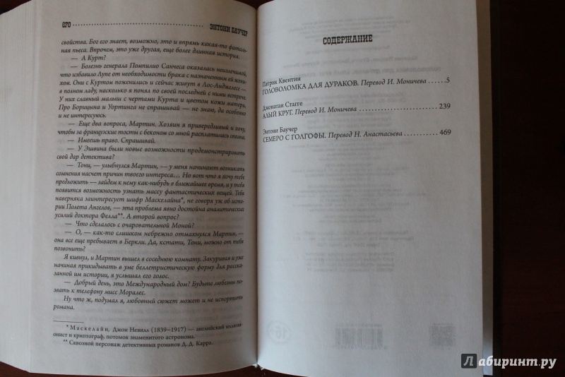 Описание"Головоломка для дураков"В частной лечебнице для душевнобольных совершено два изощренных убийства. Первой жертвой стал обычный санитар, а второй - магнат с Уолл-стрит Дэниел Лариби. Но есть ли связь между этими преступлениями, первое из которых не было выгодно совершенно никому, а второе - слишком многим? Полиция в растерянности. И тогда скучающий в клинике известный режиссер Питер Дулут начинает собственное расследование…"Алый круг"В курортном городке на атлантическом побережье жестоко убиты три женщины, и на теле каждой алой помадой нарисован круг. Неужели в тихом провинциальном местечке появился маньяк? Полиция убеждена именно в этом. Но доктор Хью Уэстлейк, ведущий частное расследование, уверен: преступник водит полицейских за нос и на самом деле его действия далеки от безумной жажды крови…"Семеро с Голгофы"В студенческом городке Калифорнийского университета совершено два загадочных убийства. Жертвами стали преподаватель истории и швейцарец, ездивший с лекционным турне по США. Что заставило преступника выбрать именно их? И что символизируют оставленные на телах таинственные послания? Полицейские теряются в догадках. И тогда за дело берутся профессор санскрита доктор Эшвин и молодой аспирант Мартин Лэм…Свернуть"Головоломка для дураков"В частной лечебнице для душевнобольных совершено два изощренных убийства. Первой жертвой стал обычный санитар, а второй - магнат с Уолл-стрит Дэниел Лариби. Но есть ли связь между этими преступлениями, первое из которых не было выгодно совершенно никому, а второе - слишком многим? Полиция в растерянности. И тогда скучающий в клинике известный режиссер Питер Дулут начинает собственное расследование…"Алый круг"В курортном городке на атлантическом побережье жестоко убиты три женщины, и на теле каждой алой помадой нарисован круг. Неужели в тихом провинциальном местечке появился маньяк? Полиция убеждена именно в этом. Но доктор Хью Уэстлейк, ведущий частное расследование, уверен: преступник водит полицейских за нос и на самом деле его действия далеки от безумной жажды крови…"Семеро с Голгофы"В студенческом городке Калифорнийского университета совершено два загадочных убийства. Жертвами стали преподаватель истории и швейцарец, ездивший с лекционным турне по США. Что заставило преступника выбрать именно их? И что символизируют оставленные на телах таинственные послания? Полицейские теряются в догадках. И тогда за дело берутся профессор санскрита доктор Эшвин и молодой аспирант Мартин Лэм…СвернутьСвернуть