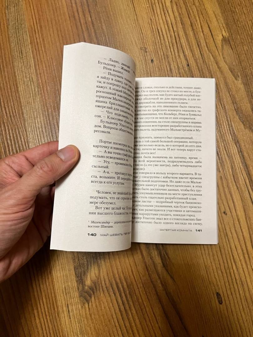 В романе «Запертая комната» Мартин Бек и его помощники должны решить множество головоломок. В одной из квартир Стокгольма найдено тело с пулевым ранением в сердце. Версия самоубийства исключена: огнестрельного оружия в квартире не оказалось. При этом окна и двери надежно заперты изнутри на замки и засовы — и никаких видимых повреждений. Убийца словно испарился... -