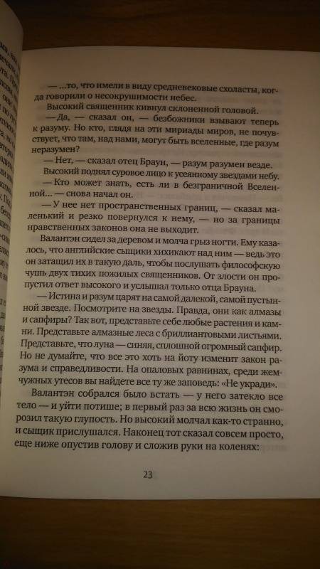 ОписаниеУ Гилберта Кита Честертона (1874-1936) нет в библиографии книги с таким названием. Но им были изданы пять сборников с именем отца Брауна на обложке - "Неведение отца Брауна", "Мудрость отца Брауна", "Тайна отца Брауна", "Скандальное происшествие с отцом Брауном" и "Недоверчивость отца Брауна". Всего пять - из восьмидесяти книг, им написанных. Причем сам он - выдающийся христианский мыслитель, поэт и эссеист - даже не считал рассказы о детективе-священнике главным итогом своего писательства. Но его читатели считали и считают иначе. Рассказы о добросердечном католическом священнике с тонким аналитическим умом и редким талантом психолога принесли Честертону всемирную славу. Большая удача выпала отцу Брауну в России, поскольку по-русски он заговорил языком Натальи Трауберг - переводчицы, конгениальной самому "отцу отца Брауна". "Поняв, что Честертон - самый главный, - писала она, - я в него буквально "вцепилась"". В Честертона потом "вцепились" и другие замечательные мастера, но этот сборник составлен только из работ Натальи Леонидовны. Перевод с английского и сопроводительная статья Натальи Трауберг Наталья Леонидовна Трауберг (1928-2009) - выдающийся российский переводчик. Окончила романо-германское отделение филфака ЛГУ, кандидат филологических наук. Была членом редакционного совета журнала "Иностранная литература", членом правления Российского библейского общества и британского Честертоновского института. Большинство авторов, произведения которых Наталья Трауберг перевела с английского, испанского, португальского, французского и итальянского, вошли в русский круг чтения благодаря ее переводам. Особый интерес у нее всегда вызывал Гилберт Кийт Честертон - и как автор детективных рассказов, и как христианский философ и мыслитель.СвернутьУ Гилберта Кита Честертона (1874-1936) нет в библиографии книги с таким названием. Но им были изданы пять сборников с именем отца Брауна на обложке - "Неведение отца Брауна", "Мудрость отца Брауна", "Тайна отца Брауна", "Скандальное происшествие с отцом Брауном" и "Недоверчивость отца Брауна". Всего пять - из восьмидесяти книг, им написанных. Причем сам он - выдающийся христианский мыслитель, поэт и эссеист - даже не считал рассказы о детективе-священнике главным итогом своего писательства. Но его читатели считали и считают иначе. Рассказы о добросердечном католическом священнике с тонким аналитическим умом и редким талантом психолога принесли Честертону всемирную славу. Большая удача выпала отцу Брауну в России, поскольку по-русски он заговорил языком Натальи Трауберг - переводчицы, конгениальной самому "отцу отца Брауна". "Поняв, что Честертон - самый главный, - писала она, - я в него буквально "вцепилась"". В Честертона потом "вцепились" и другие замечательные мастера, но этот сборник составлен только из работ Натальи Леонидовны. Перевод с английского и сопроводительная статья Натальи Трауберг Наталья Леонидовна Трауберг (1928-2009) - выдающийся российский переводчик. Окончила романо-германское отделение филфака ЛГУ, кандидат филологических наук. Была членом редакционного совета журнала "Иностранная литература", членом правления Российского библейского общества и британского Честертоновского института. Большинство авторов, произведения которых Наталья Трауберг перевела с английского, испанского, порт