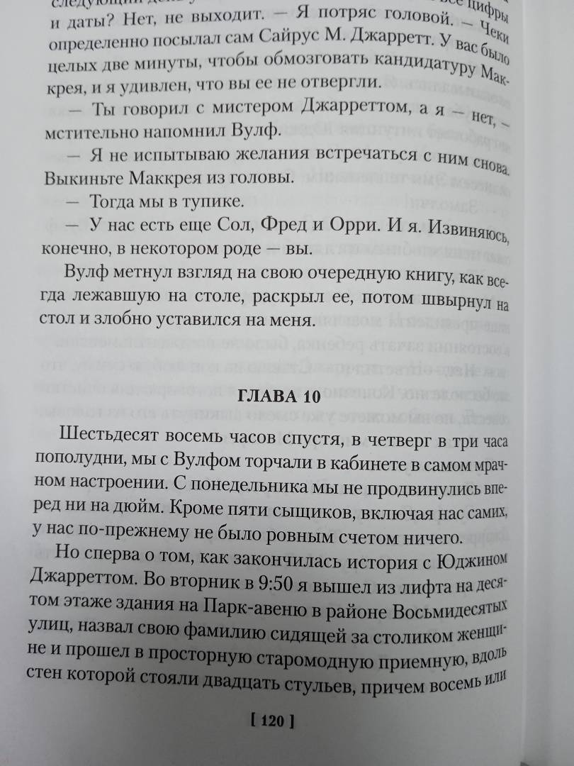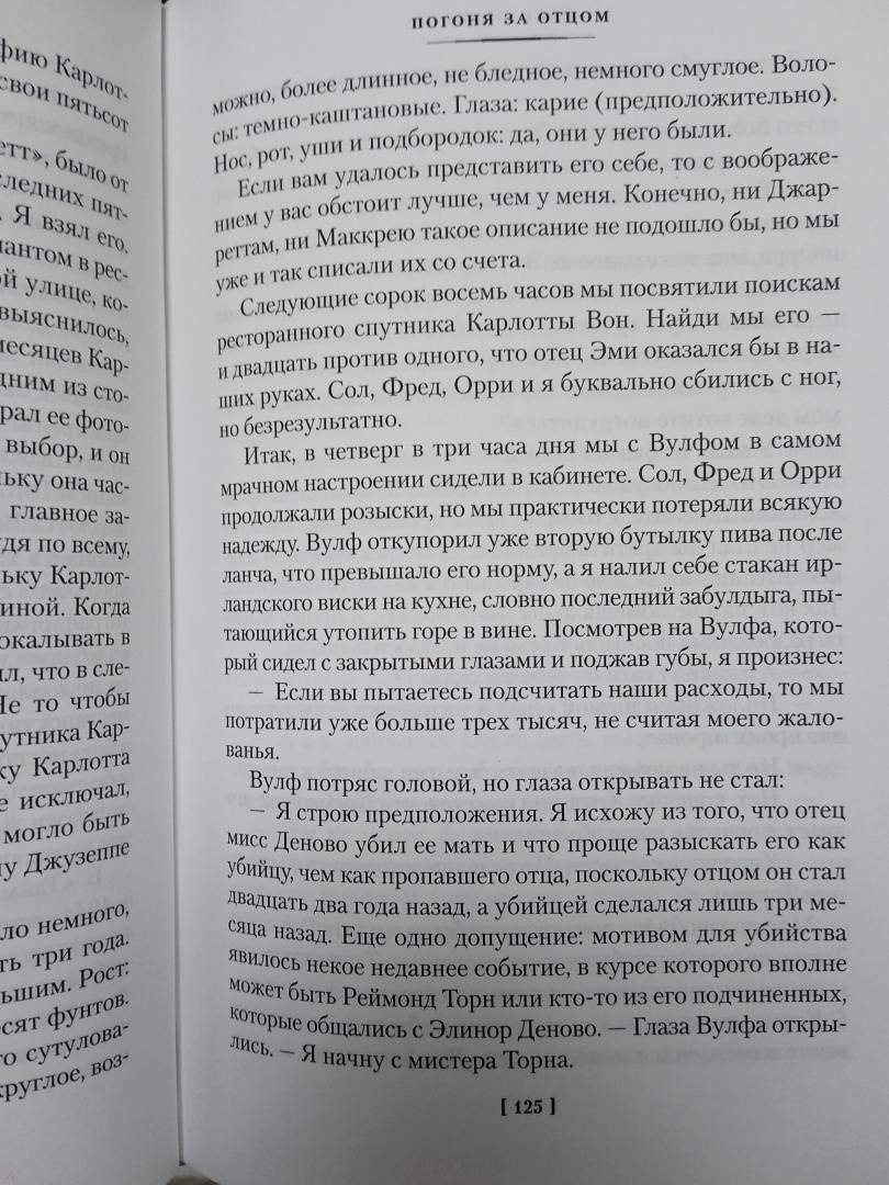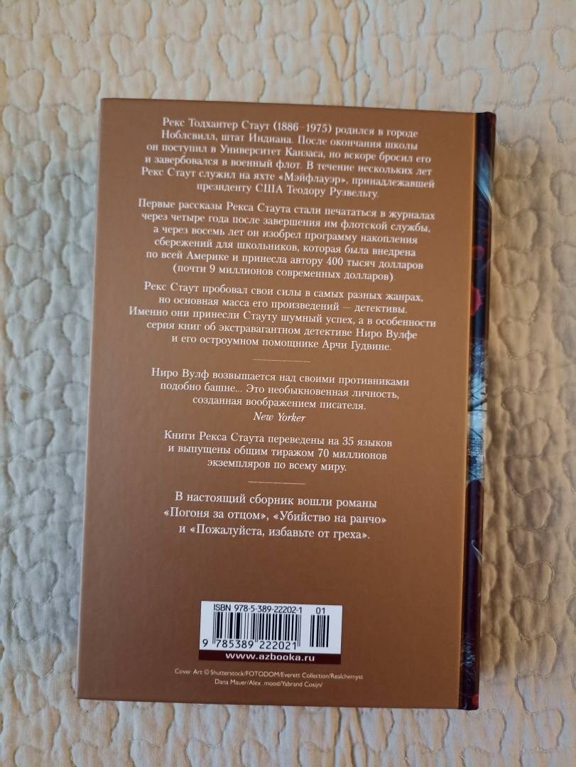ОписаниеНиро Вулф, страстный коллекционер орхидей, большой гурман, любитель пива и великий сыщик, практически никогда не выходит из дому. Все преступления он распутывает на основе тех фактов, которые собирает Арчи Гудвин, его обаятельный, ироничный помощник с отличной памятью. Эми Деново просит Вулфа найти ее отца, которого она никогда не знала и от которого после смерти матери получила в наследство четверть миллиона долларов наличными. Вулф берется за дело, а заодно находит и убийцу матери… Арчи Гудвин проводит отпуск на ранчо своей подруги Лили Роуэн. Управляющего ранчо Лили арестовывают по подозрению в убийстве человека, который обесчестил его дочь. Гудвин пишет письмо Вулфу с просьбой об отпуске за свой счет, чтобы доказать невиновность управляющего. Однако знаменитый сыщик неожиданно появляется на ранчо и предлагает свою помощь… Вулф сидит без работы, а деньги на его счету таят. Обеспокоенный этой проблемой, Арчи Гудвин сначала уговаривает вдову погибшего от взрыва бомбы, подложенной в ящик письменного стола, обратиться к Ниро Вулфу, а потом убеждает Вулфа взяться за расследование…СвернутьНиро Вулф, страстный коллекционер орхидей, большой гурман, любитель пива и великий сыщик, практически никогда не выходит из дому. Все преступления он распутывает на основе тех фактов, которые собирает Арчи Гудвин, его обаятельный, ироничный помощник с отличной памятью. Эми Деново просит Вулфа найти ее отца, которого она никогда не знала и от которого после смерти матери получила в наследство четверть миллиона долларов наличными. Вулф берется за дело, а заодно находит и убийцу матери… Арчи Гудвин проводит отпуск на ранчо своей подруги Лили Роуэн. Управляющего ранчо Лили арестовывают по подозрению в убийстве человека, который обесчестил его дочь. Гудвин пишет письмо Вулфу с просьбой об отпуске за свой счет, чтобы доказать невиновность управляющего. Однако знаменитый сыщик неожиданно появляется на ранчо и предлагает свою помощь… Вулф сидит без работы, а деньги на его счету таят. Обеспокоенный этой проблемой, Арчи Гудвин сначала уговаривает вдову погибшего от взрыва бомбы, подложенной в ящик письменного стола, обратиться к Ниро Вулфу, а потом убеждает Вулфа взяться за расследование…СвернутьСвернуть