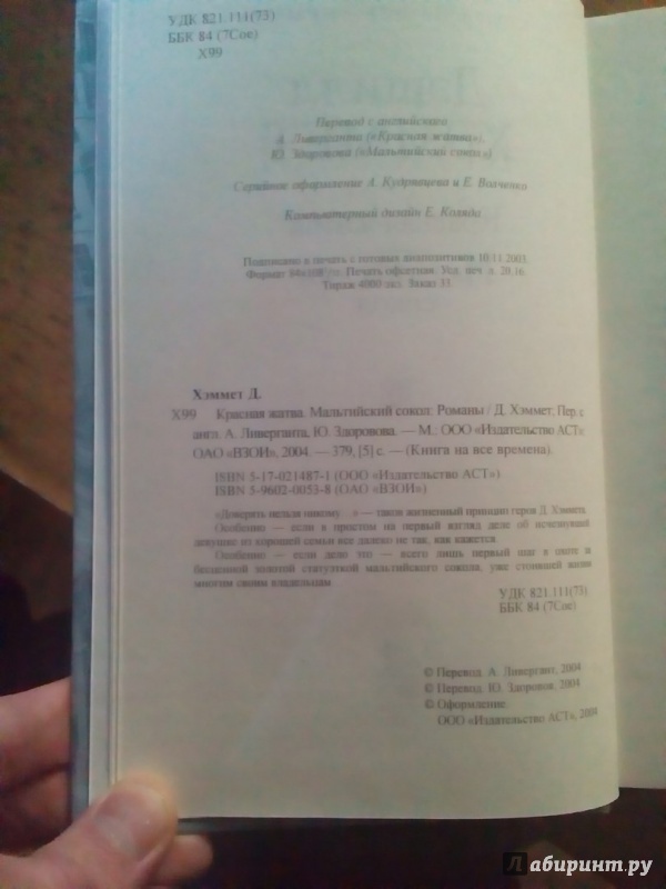 Объем, стр. 384 ISBN 5-1-7--02-1487--1 Автор Хэммет Дэшилл, Ливергант Александр Яковлевич, Здоровов Ю. А. Переводчик Ливергант Александр Яковлевич, Здоровов Ю. А. Серия Книга на все времена Год издания книги 2004 Тип обложки Твердый переплет Иллюстрации Без иллюстраций Вес, г 406г Размеры 206х133х22 мм - Отзывы