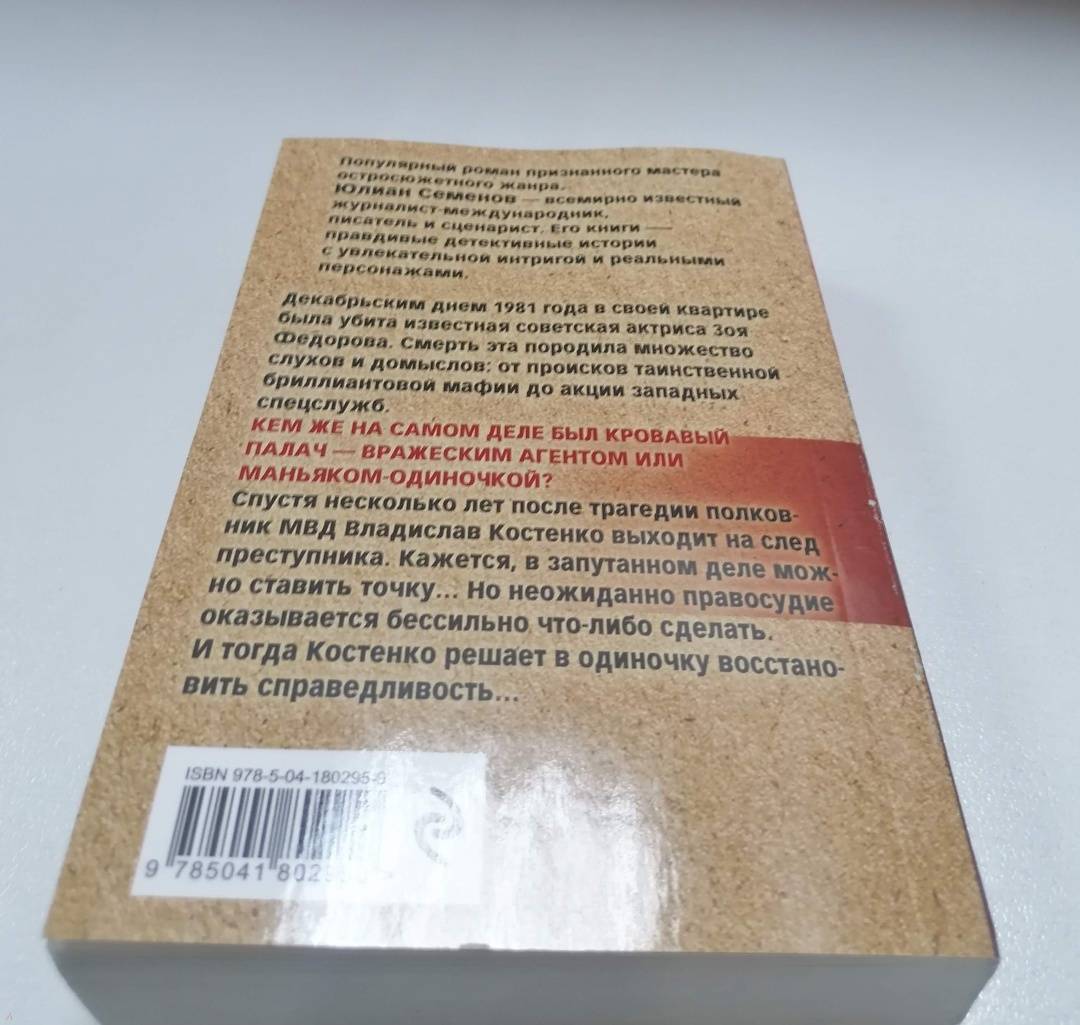 ОписаниеПопулярный роман признанного мастера остросюжетного жанра. Юлиан Семенов - всемирно известный журналист-международник, писатель и сценарист. Его книги - правдивые детективные истории с увлекательной интригой и реальными персонажами. Декабрьским днем 1981 года в своей квартире была убита известная советская актриса Зоя Федорова. Смерть эта породила множество слухов и домыслов: от происков таинственной бриллиантовой мафии до акции западных спецслужб. Кем же на самом деле был кровавый палач - вражеским агентом или маньяком-одиночкой? Спустя несколько лет после трагедии полковник МВД Владислав Костенко выходит на след преступника. Кажется, в запутанном деле можно ставить точку… Но неожиданно правосудие оказывается бессильно что-либо сделать. И тогда Костенко решает в одиночку восстановить справедливость…Популярный роман признанного мастера остросюжетного жанра. Юлиан Семенов - всемирно известный журналист-международник, писатель и сценарист. Его книги - правдивые детективные истории с увлекательной интригой и реальными персонажами. Декабрьским днем 1981 года в своей квартире была убита известная советская актриса Зоя Федорова. Смерть эта породила множество слухов и домыслов: от происков таинственной бриллиантовой мафии до акции западных спецслужб. Кем же на самом деле был кровавый палач - вражеским агентом или маньяком-одиночкой? Спустя несколько лет после трагедии полковник МВД Владислав Костенко выходит на след преступника. Кажется, в запутанном деле можно ставить точку… Но неожиданно правосудие оказывается бессильно что-либо сделать. И тогда Костенко решает в одиночку восстановить справедливость…