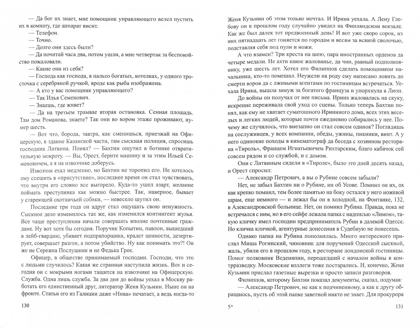 ОписаниеВ романе известного мастера детективного жанра Эдуарда Анатольевича Хруцкого (1933-2010) описываются криминальные истории Российской империи начала XX столетия - вымогательства, грабежи, убийства. Непримиримую борьбу с "героями" уголовного мира ведет чиновник сыскной полиции Александр Бахтин. Перед силой его интеллекта, высоким оперативным мастерством не могут устоять самые бесчестные и самые изощренные преступники.В романе известного мастера детективного жанра Эдуарда Анатольевича Хруцкого (1933-2010) описываются криминальные истории Российской империи начала XX столетия - вымогательства, грабежи, убийства. Непримиримую борьбу с "героями" уголовного мира ведет чиновник сыскной полиции Александр Бахтин. Перед силой его интеллекта, высоким оперативным мастерством не могут устоять самые бесчестные и самые изощренные преступники.