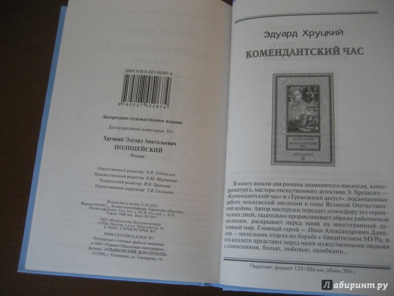 Объем, стр. 459 ISBN 978-5-227-05267-4, 978-5-227-05759-4 Автор Хруцкий Эдуард Анатольевич Серия Классическая библиотека приключений и науч.фант. Минимальный возраст 16+ Год издания книги 2014 Тип обложки Твердый переплет Иллюстрации Без иллюстраций Вес, г 354г Размеры 206х138х27 мм - Отзывы