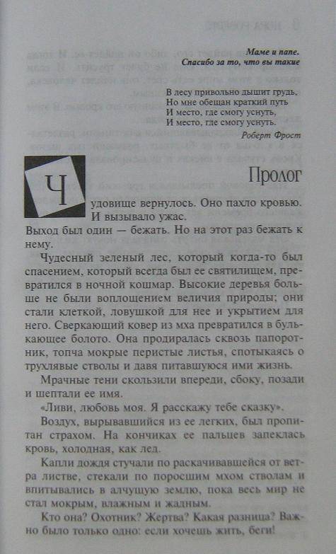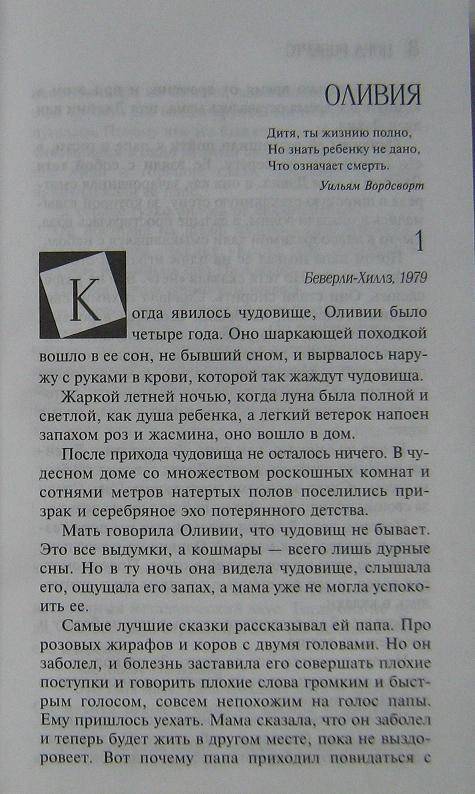 ОписаниеОливия Макбрайд многое отдала бы за то, чтобы забыть ту страшную ночь, когда она, маленькая девочка, стала свидетельницей убийства своей матери - голливудской звезды Джулии Макбрайд. Но память повзрослевшей Оливии снова и снова возвращает ее к давнему ночному кошмару, а однажды Оливия понимает, что тени прошлого вторглись и в ее сегодняшнюю жизнь. И если бы не любовь и преданность Ноя Брэди, на этот раз жертвой бы стала она сама...Оливия Макбрайд многое отдала бы за то, чтобы забыть ту страшную ночь, когда она, маленькая девочка, стала свидетельницей убийства своей матери - голливудской звезды Джулии Макбрайд. Но память повзрослевшей Оливии снова и снова возвращает ее к давнему ночному кошмару, а однажды Оливия понимает, что тени прошлого вторглись и в ее сегодняшнюю жизнь. И если бы не любовь и преданность Ноя Брэди, на этот раз жертвой бы стала она сама...
