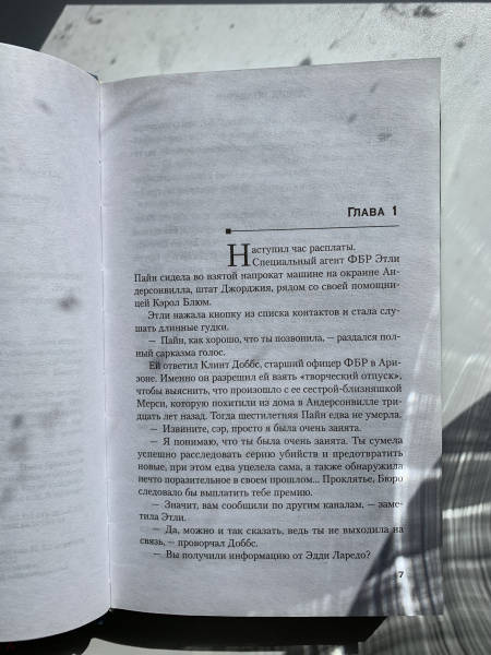 ОписаниеОт автора бестселлеров #1 New York TimesБестселлер #1 в ВеликобританииВ мире продано более 150 000 000 экземпляров романов БолдаччиСамая новая и яркая героиня Болдаччи - спецагент ФБР Этли ПайнВ памяти у Этли Пайн, словно стальная заноза, засело воспоминание: ей шесть лет, и вторгшийся в их дом мужчина выбирает с помощью детской считалки между ней и сестрой-близнецом Мерси. Останавливается на Мерси и уносит ее с собой. Больше Этли никогда не видела сестренку…Спустя тридцать лет спецагент ФБР Пайн, приложив неимоверные усилия, смогла вычислить похитителя - некоего Ито Винченцо. Который, впрочем, давно исчез, не оставив следов. Чтобы найти хоть какую-то ниточку, она отправляется туда, где его видели последний раз, в Нью-Джерси. В дом, где живет внук Винченцо, Тони. Этли собирается просто поговорить с ним, однако Тони, едва услышав стук в дверь и голос женщины, сбегает. Пайн бросается в погоню и, отчаявшись догнать гонимого диким страхом беглеца, собирается сделать предупредительный выстрел. Но не суждено. Откуда-то справа она получает удар, сбивающий с ног. А поднявшись, видит направленный на нее ствол…Дэвид Болдаччи - настоящий классик остросюжетного жанра. Он выпустил более 40 произведений, переведенных более чем на 45 языков и вышедших в более чем 80 странах общим тиражом более 150 000 000 экземпляров; при этом каждый его роман становился международным мегабестселлером. Его имя занесено в Международный зал славы писателей криминального жанра. Романы Дэвида называл в числе своих любимых президент США Билл Клинтон. По его роману "Абсолютная власть" был снят одноименный киноблокбастер, режиссером и исполнителем главной роли в котором стал Клинт Иствуд. Также по романам Дэвида был снят популярный телесериал "Кинг и Максвелл" (2013). В довершение ко всему, в 1997 г. журнал "Пипл" включил Болдаччи в список 50 самых красивых людей планеты.Этли Пайн - героиня, которую я никогда не забуду.Тесс ГерритсенРоман, который устанавливает высокую планку и невероятным образом сам берет выше нее. Providence JournalОдин из самых успешных авторов в жанре триллера, Болдаччи попросту не нуждается в представлении.Daily MailБолдаччи словно примеряет кожу своих героев - и поражает нас глубиной своей эмпатии.Sunday ExpressБолдаччи - один из лучших авторов триллеров всех времен.Лиза ГарднерБолдаччи по-прежнему не имеет себе равных.Sunday TimesСвернутьОт автора бестселлеров #1 New York TimesБестселлер #1 в ВеликобританииВ мире продано более 150 000 000 экземпляров романов БолдаччиСамая новая и яркая героиня Болдаччи - спецагент ФБР Этли ПайнВ памяти у Этли Пайн, словно стальная заноза, засело воспоминание: ей шесть лет, и вторгшийся в их дом мужчина выбирает с помощью детской считалки между ней и сестрой-близнецом Мерси. Останавливается на Мерси и уносит ее с собой. Больше Этли никогда не видела сестренку…Спустя тридцать лет спецагент ФБР Пайн, приложив неимоверные усилия, смогла вычислить похитителя - некоего Ито Винченцо. Который, впрочем, давно исчез, не оставив следов. Чтобы найти хоть какую-то ниточку, она отправляется туда, где его видели последний раз, в Нью-Джерси. В дом, где живет внук Винченцо, Тони. Этли собирается просто поговорить с ним, однако Тони, едва услышав стук в дверь и голос женщины, сбегает. Пайн бросается в погоню и, отчаявшись догнать гонимого диким страхом беглеца, собирается сделать пр