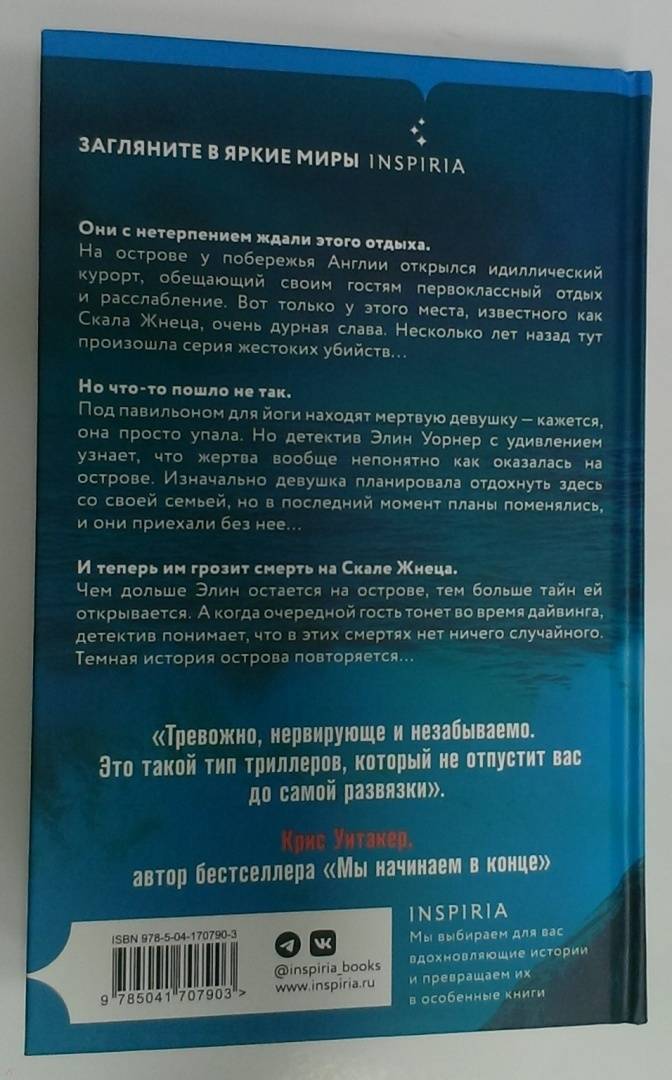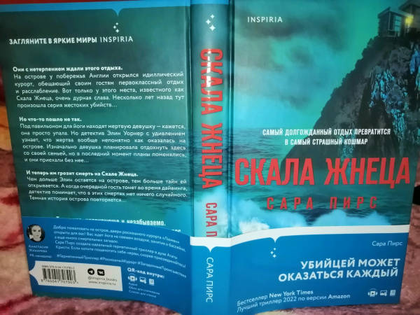 ОписаниеБестселлер New York Times. Лучший триллер 2022 года по версии Amazon.Они с нетерпением ждали этого отдыха.На острове у побережья Англии открылся идиллический курорт, обещающий своим гостям первоклассный отдых и расслабление. Вот только у этого места, известного как Скала Жнеца, очень дурная слава. Несколько лет назад тут произошла серия жестоких убийств...Но что-то пошло не так.Под павильоном для йоги находят мертвую девушку - кажется, она просто упала. Но детектив Элин Уорнер с удивлением узнает, что жертва вообще непонятно как оказалась на острове. Изначально девушка планировала отдохнуть здесь со своей семьей, но в последний момент планы поменялись, и они приехали без нее…И теперь им грозит смерть на Скале Жнеца.Чем дольше Элин остается на острове, тем больше тайн ей открывается. А когда очередной гость тонет во время дайвинга, детектив понимает, что в этих смертях нет ничего случайного. Темная история острова повторяется…Опасное и увлекательное детективное расследование на курорте, где убийцей может оказаться каждый. Новинка от Сары Пирс, автора нашумевшего триллера "Санаторий"."Напоминает мне тревожные детективы Агаты Кристи - когда убийца может быть с тобой в одной комнате. Свежий, смелый и неотразимый триллер!" - А. Дж. Финн"Тревожно, нервирующе и незабываемо. Это такой тип триллеров, который не отпустит вас до самой развязки". - Крис Уитакер, автор бестселлера "Мы начинаем в конце""Напряжение неумолимо нарастает и ведет к потрясающей кульминации". - Дэвид Болдаччи"Захватывающий, закрученный page-turner... Читатели первой книги Пирс и любители остросюжетных романов не смогут оторваться от этого атмосферного, иногда жуткого детектива". - Library Journal "Пирс удается сочетать любимую обстановку Агаты Кристи, остров в изоляции, и ценности 21-го века. Потрясающее сочетание триллера и детектива". - Sunday TimesСвернутьБестселлер New York Times. Лучший триллер 2022 года по версии Amazon.Они с нетерпением ждали этого отдыха.На острове у побережья Англии открылся идиллический курорт, обещающий своим гостям первоклассный отдых и расслабление. Вот только у этого места, известного как Скала Жнеца, очень дурная слава. Несколько лет назад тут произошла серия жестоких убийств...Но что-то пошло не так.Под павильоном для йоги находят мертвую девушку - кажется, она просто упала. Но детектив Элин Уорнер с удивлением узнает, что жертва вообще непонятно как оказалась на острове. Изначально девушка планировала отдохнуть здесь со своей семьей, но в последний момент планы поменялись, и они приехали без нее…И теперь им грозит смерть на Скале Жнеца.Чем дольше Элин остается на острове, тем больше тайн ей открывается. А когда очередной гость тонет во время дайвинга, детектив понимает, что в этих смертях нет ничего случайного. Темная история острова повторяется…Опасное и увлекательное детективное расследование на курорте, где убийцей может оказаться каждый. Новинка от Сары Пирс, автора нашумевшего триллера "Санаторий"."Напоминает мне тревожные детективы Агаты Кристи - когда убийца может быть с тобой в одной комнате. Свежий, смелый и неотразимый триллер!" - А. Дж. Финн"Тревожно, нервирующе и незабываемо. Это такой тип триллеров, который не отпустит вас до самой развязки". - Крис Уитакер, автор бестселлера "Мы начинаем в конце""Напряжение неумолимо нарастает и ведет к потрясающей кульми