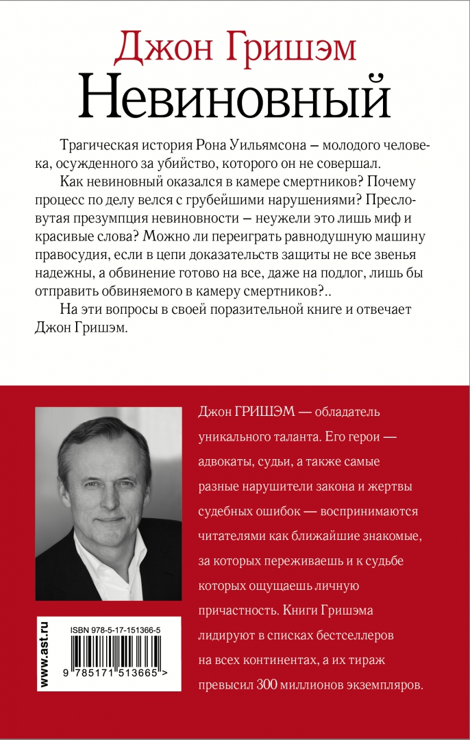 ОписаниеТрагическая история Рона Уильямсона - молодого человека, осужденного за убийство, которого он не совершал. Как невиновный оказался в камере смертников? Почему процесс по делу велся с грубейшими нарушениями? Пресловутая презумпция невиновности - неужели это лишь миф и красивые слова? Можно ли переиграть равнодушную машину правосудия, если в цепи доказательств защиты не все звенья надежны, а обвинение готово на все, даже на подлог, лишь бы отправить обвиняемого в камеру смертников?..На эти вопросы в своей поразительной книге и отвечает Джон Гришэм.Трагическая история Рона Уильямсона - молодого человека, осужденного за убийство, которого он не совершал. Как невиновный оказался в камере смертников? Почему процесс по делу велся с грубейшими нарушениями? Пресловутая презумпция невиновности - неужели это лишь миф и красивые слова? Можно ли переиграть равнодушную машину правосудия, если в цепи доказательств защиты не все звенья надежны, а обвинение готово на все, даже на подлог, лишь бы отправить обвиняемого в камеру смертников?..На эти вопросы в своей поразительной книге и отвечает Джон Гришэм.