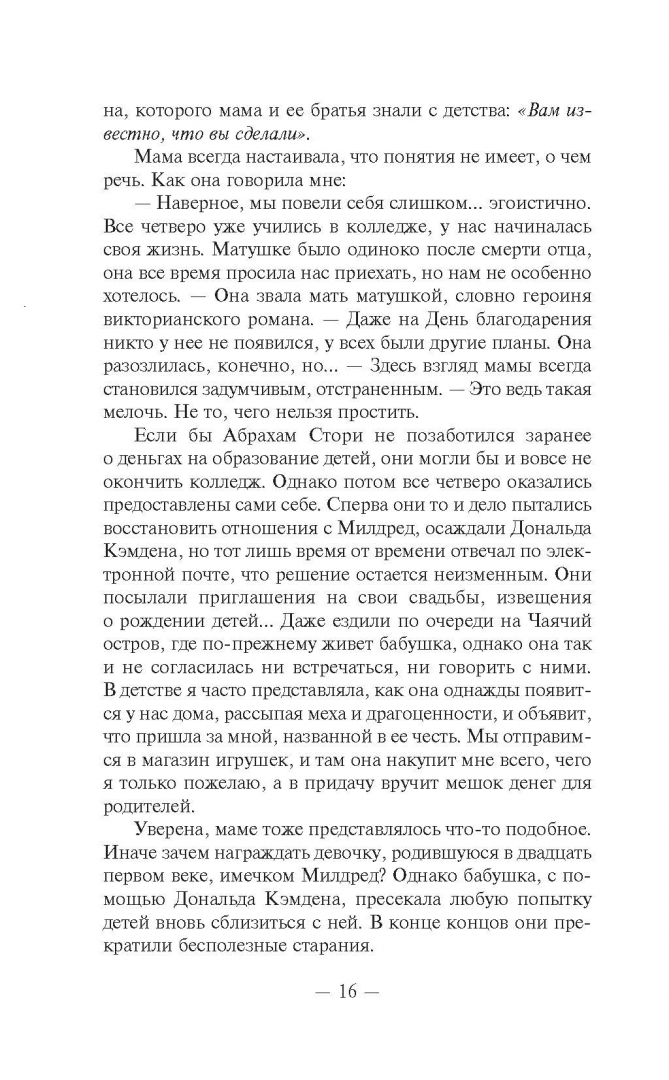 СвернутьБестселлер №1 по версии New York TimesОт автора всемирно известных молодежных романов "Один из нас лжет", "Двое могут хранить секрет", "Один из нас - следующий". Книги Карен М. Макманус переведены более чем на сорок языков!Много лет назад состоятельная дама Милдред Стори внезапно разорвала отношения со своими детьми и лишила их наследства. Единственным объяснением стала короткая записка: "Вам известно, что вы сделали".Прошли годы. У детей Милдред подросли собственные дети. И вот однажды Милли, Обри и Джона получают приглашение от бабушки провести лето в принадлежащем ей роскошном курортном отеле. Ребята едва знакомы и совсем не жаждут компании друг друга, но их родители понимают - это шанс вернуть благосклонность матери… Но на острове их не ждет теплый прием, и вскоре они осознают, что у бабушки на них совсем другие планы. И чем дольше остаются здесь, тем больше понимают, что в записке - далеко не пустые слова. Двадцать лет назад в семье Стори произошло нечто, навсегда изменившее жизнь их родителей…Новый взрывной триллер от автора культового хита «Один из нас лжет» Карен Макманус.