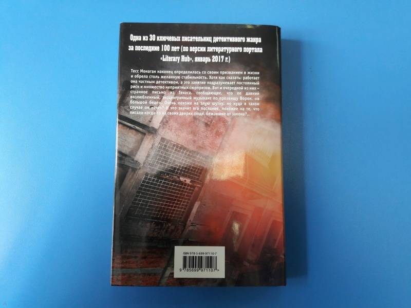 ОписаниеТесс Монаган наконец определилась со своим призванием в жизни и обрела столь желанную стабильность. Хотя как сказать: работает она частным детективом, а это занятие подразумевает постоянный риск и множество неприятных сюрпризов. Вот и очередной из них - странное письмо из Техаса, сообщающее, что ее давний возлюбленный, эксцентричный музыкант по прозвищу Ворон, "в большой беде". Очень похоже на злую шутку, но куда в таком случае он исчез? И что значит его послание, похожее на те, что писали когда-то на своих дверях люди, бежавшие от закона?..Тесс Монаган наконец определилась со своим призванием в жизни и обрела столь желанную стабильность. Хотя как сказать: работает она частным детективом, а это занятие подразумевает постоянный риск и множество неприятных сюрпризов. Вот и очередной из них - странное письмо из Техаса, сообщающее, что ее давний возлюбленный, эксцентричный музыкант по прозвищу Ворон, "в большой беде". Очень похоже на злую шутку, но куда в таком случае он исчез? И что значит его послание, похожее на те, что писали когда-то на своих дверях люди, бежавшие от закона?..
